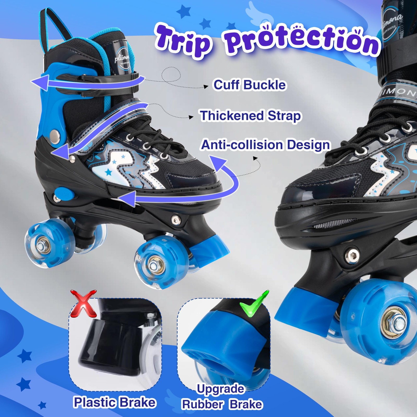 Kids Adjustable Roller Skates 4 Sizes, Light Up Wheels for Boys Girls Fun Ill