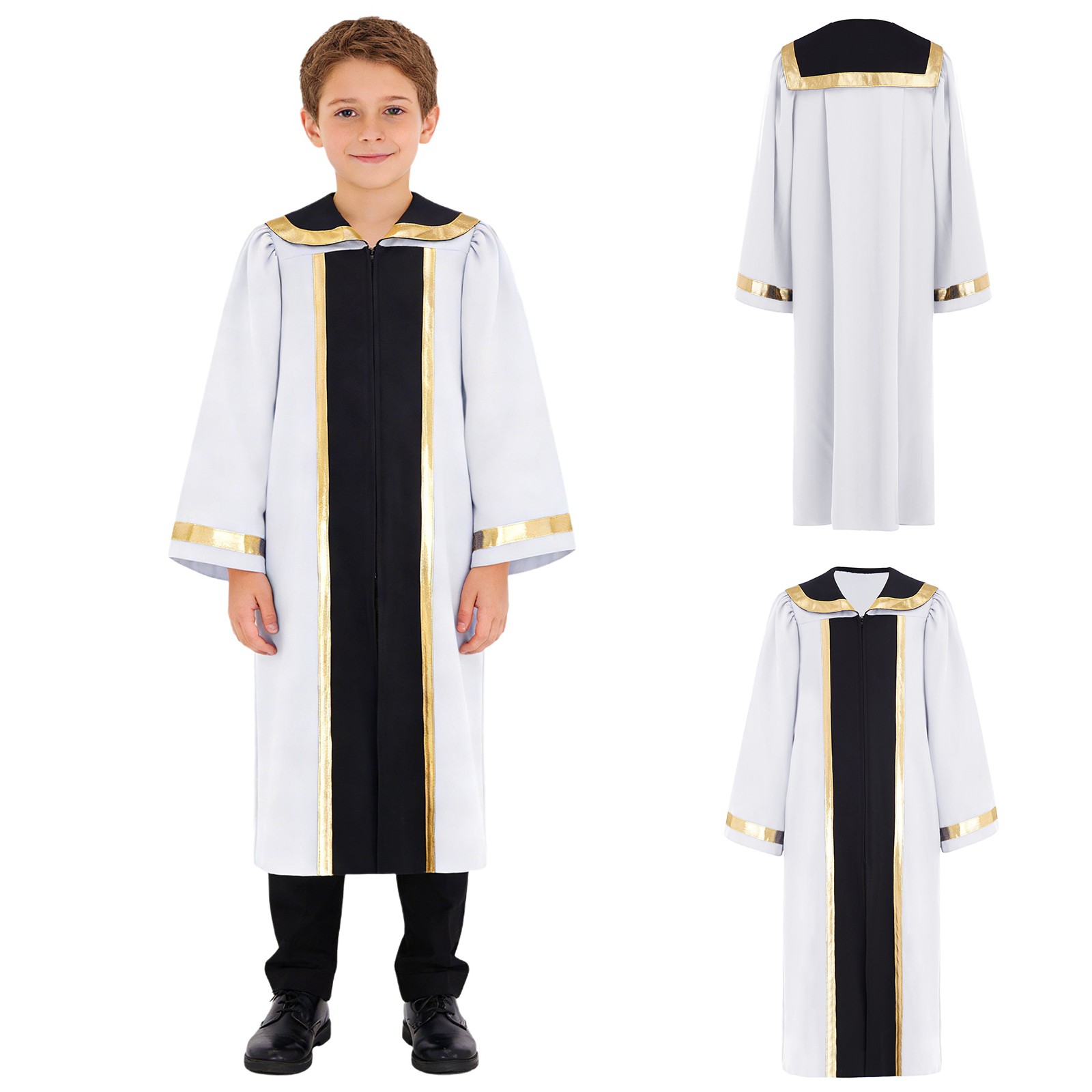 Unisex Kids Robe Themed Dress Girls Gown Praise Costume Dance Mock Neck Worship