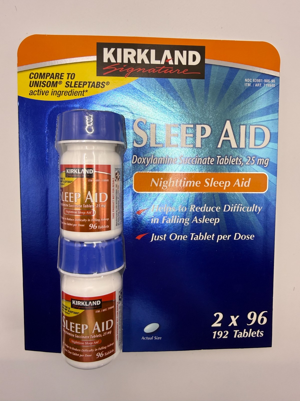 2 Pack Kirkland Signature Sleep Aid 25mg Doxylamine Tablets 4x96