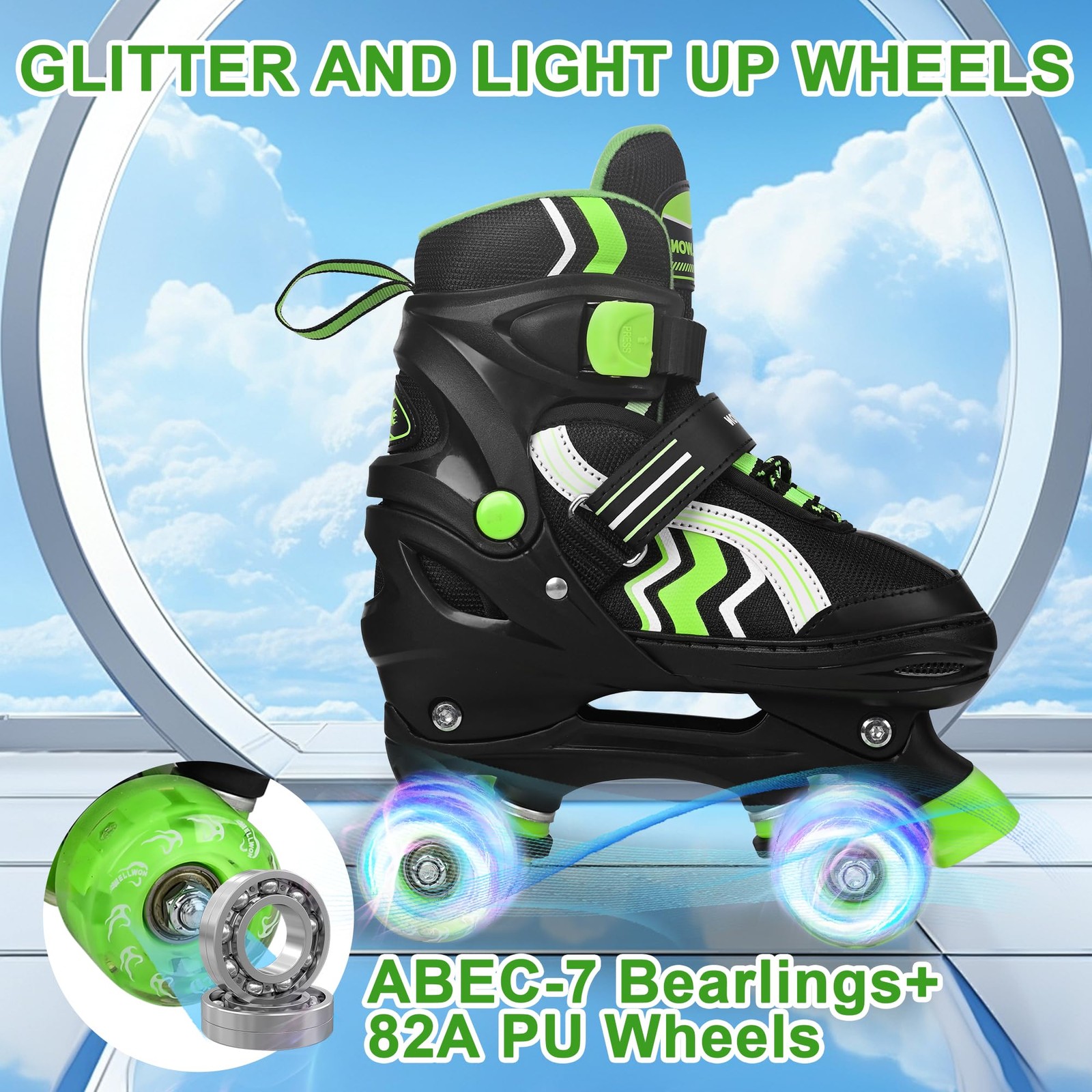 Adjustable Quad Roller Skates for Kids Youth Teen 12-14 with Light Up Wheels