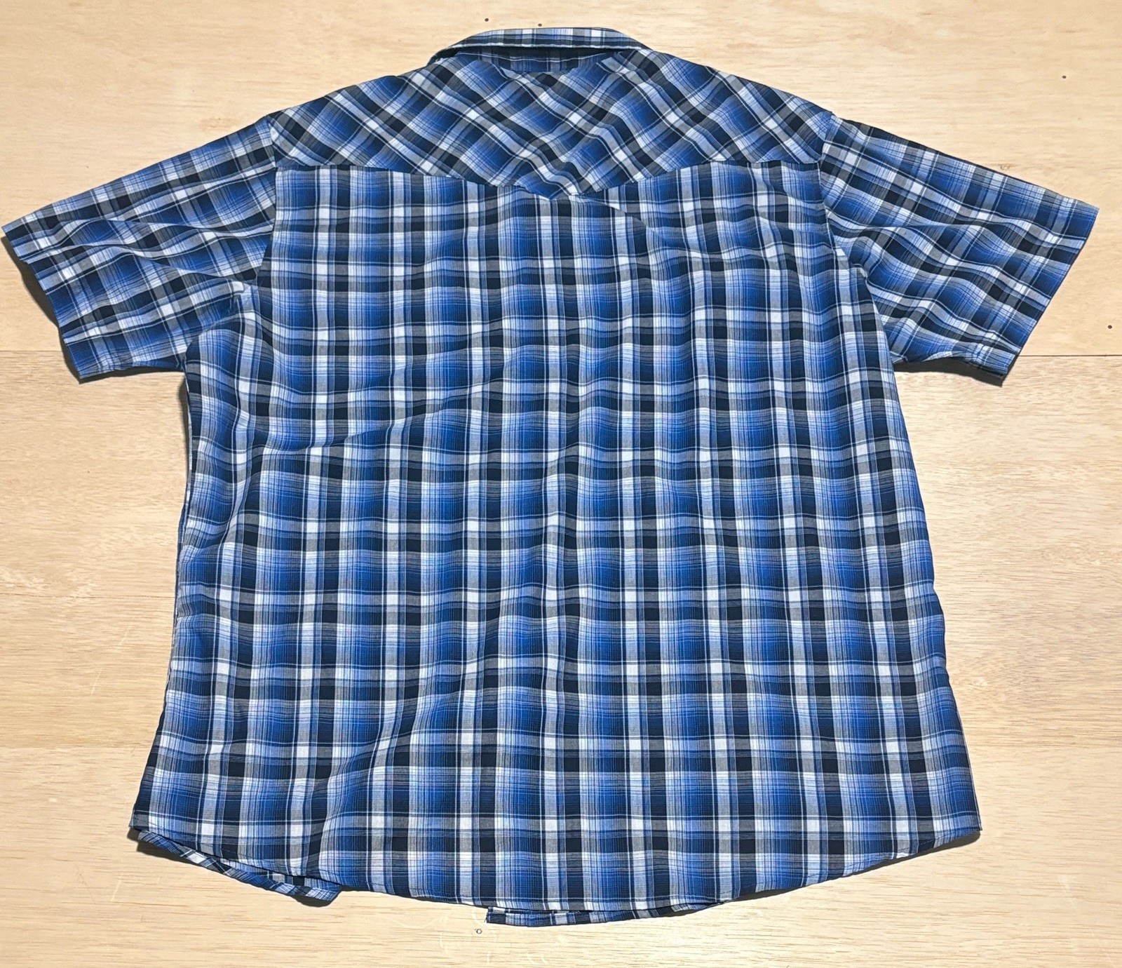 как выглядит VTG Wrangler Western Shirts Blue Pearl Snap Short Sleeve Shirt Size 2XL фото