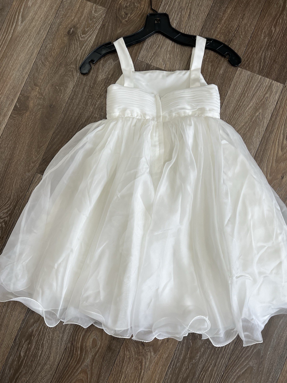 как выглядит White Flower Girl Dress, David Bridals. Tulle Skirt, Beaded Bodice Size 8 Girls фото