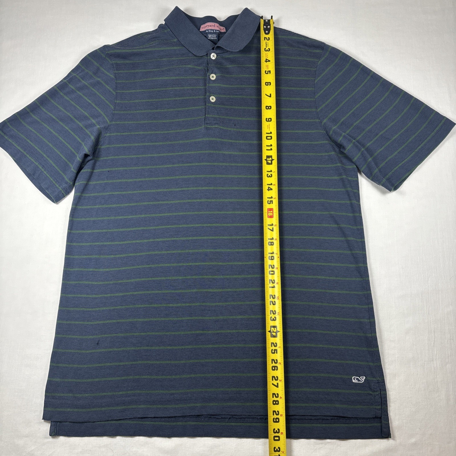 как выглядит Mens Vineyard Vines Short Sleeve Blue/Green Striped Polo Shirt Size M See Pic фото