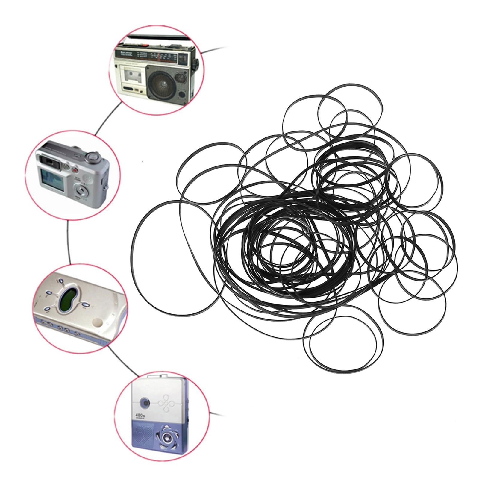 как выглядит 100PCS 3mm Flat Rubber Belts Assorted Lengths for Cassette Tape Drives DVD Pl фото