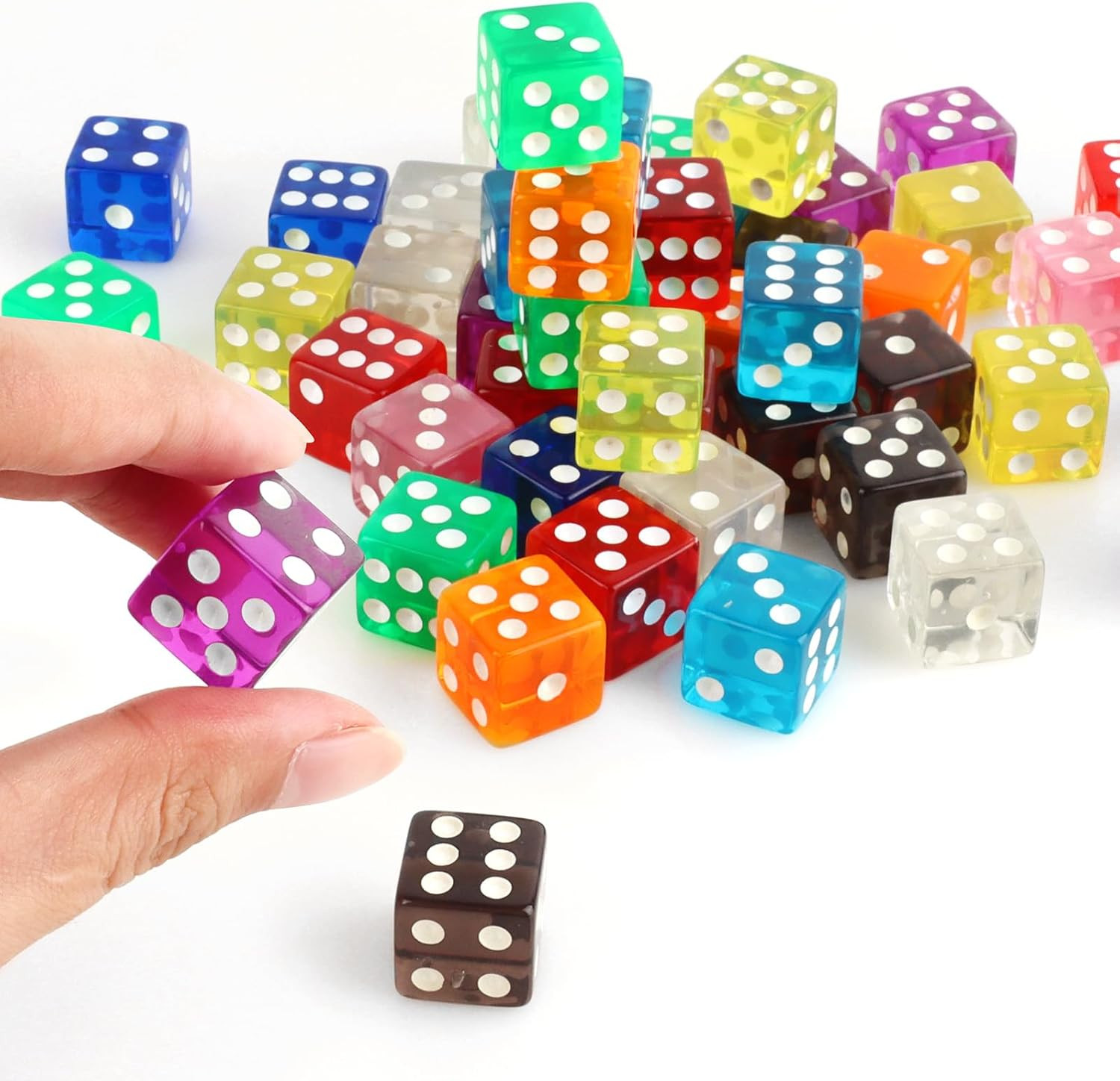 50 Pieces Colored Dice Set 16Mm Standard Game Dices Acrylic 6 Sided Colorful Bul