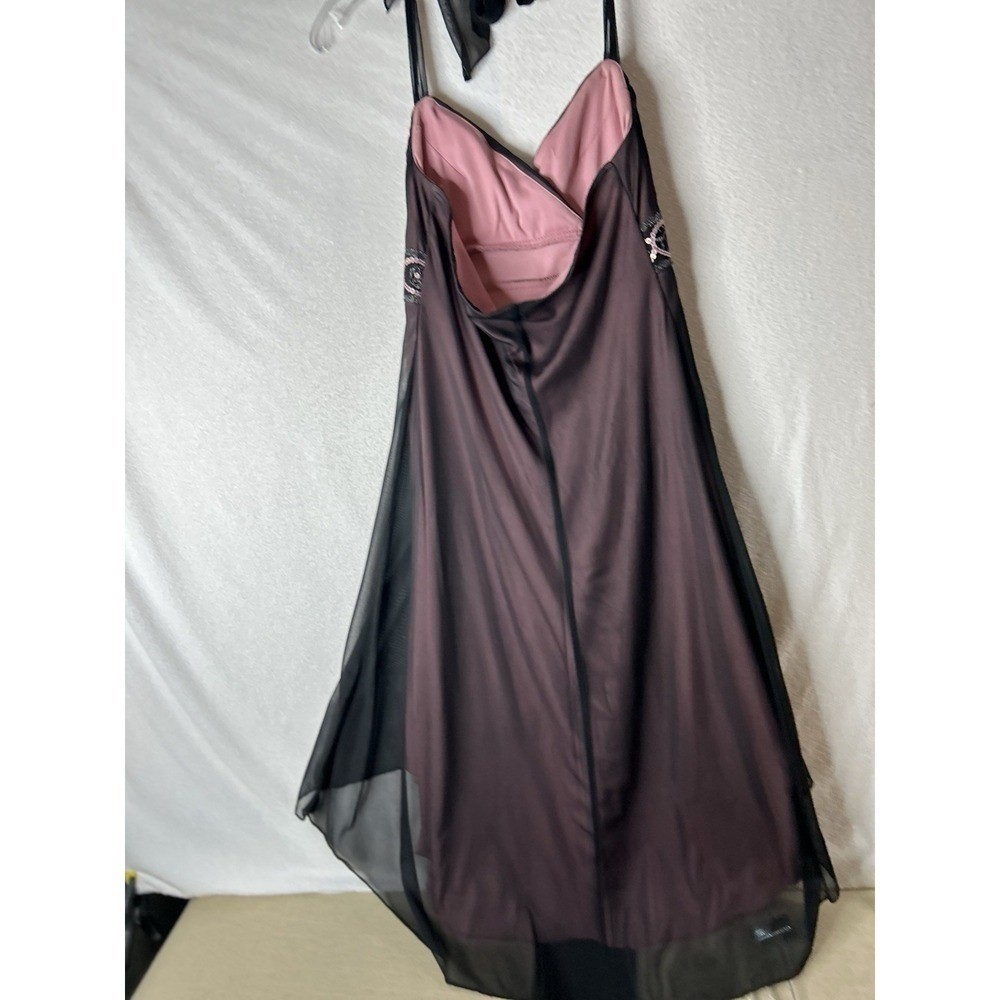 как выглядит Y2K Vintage City Triangles Black Pink Beaded Halter Cocktail Prom Dress Med фото