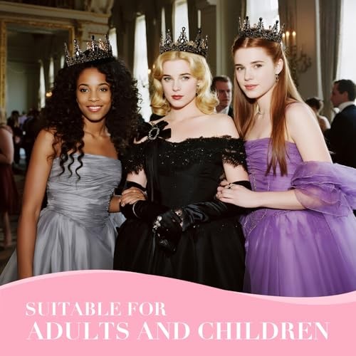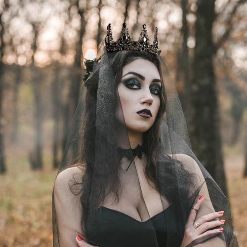 Black Baroque Queen Crown for Women, Gothic Crystal Tiara for Black-3