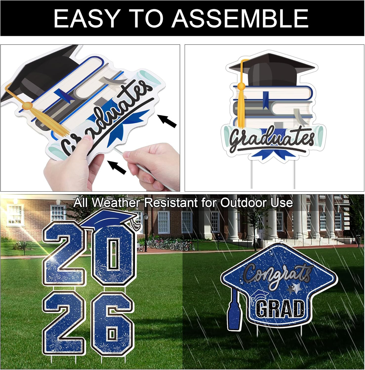 Large 11-Piece Graduation Yard Signs Set for Class of 2026, Black and Blue