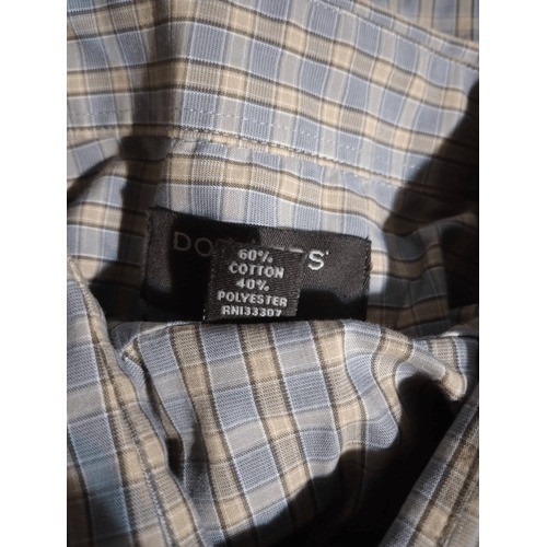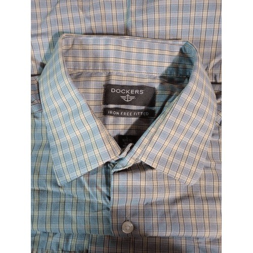 как выглядит Dockers Mens Iron Free Fitted Plaid Button Down Dress Shirt Blue Tan L 16-16.5 фото
