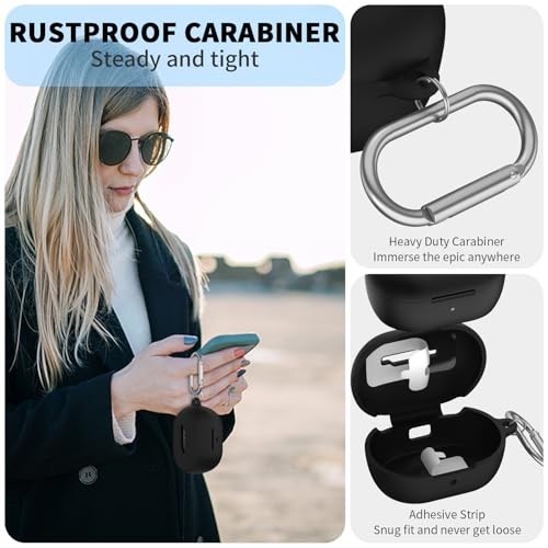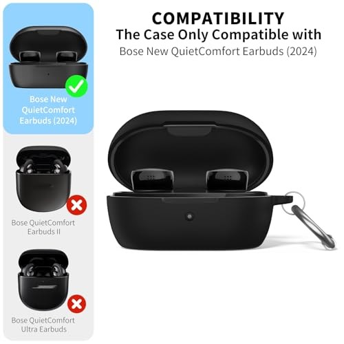 for Bose New QuietComfort Earbuds 2024 Case Cover with Cleaning Kit, Black
