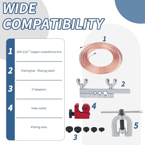 25 ft 3/16 Copper Coated Brake Line Kit 16 Brake Line Fittings and 4 Unions