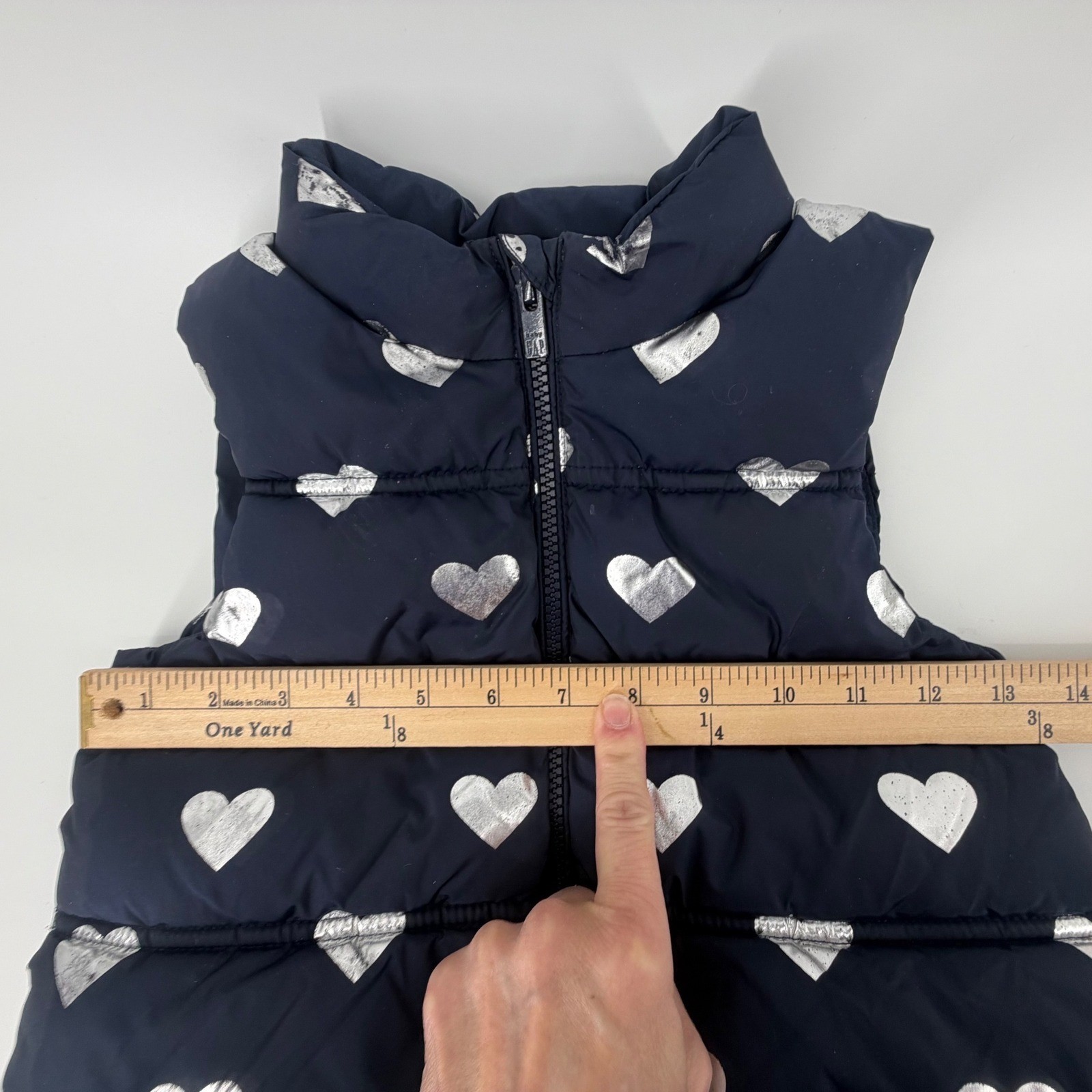 как выглядит Baby Gap Girls Navy Blue Silver Heart Puffer Vest 5T Toddler Full Zip Quilted фото