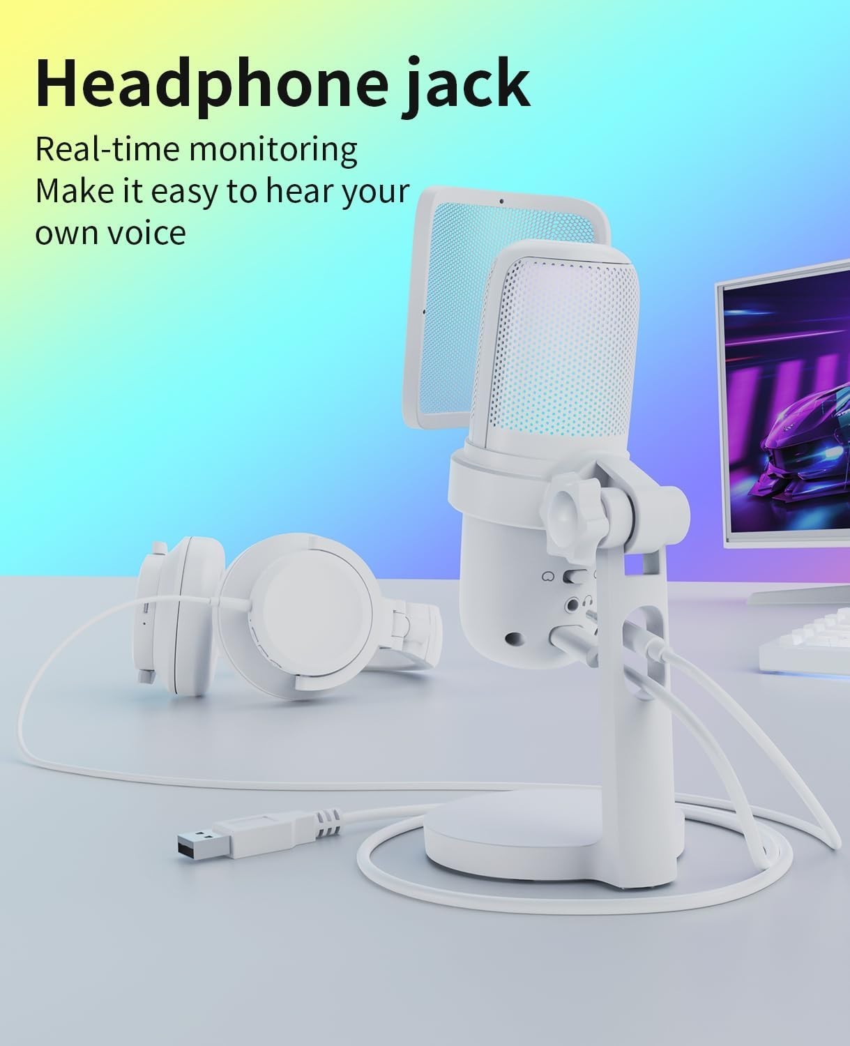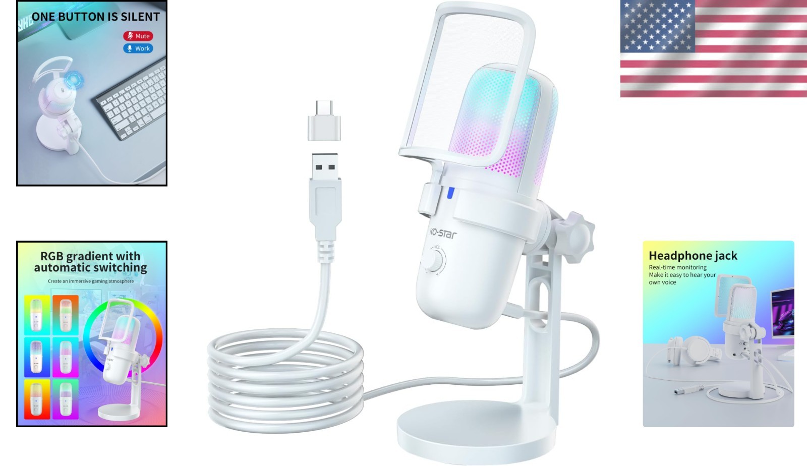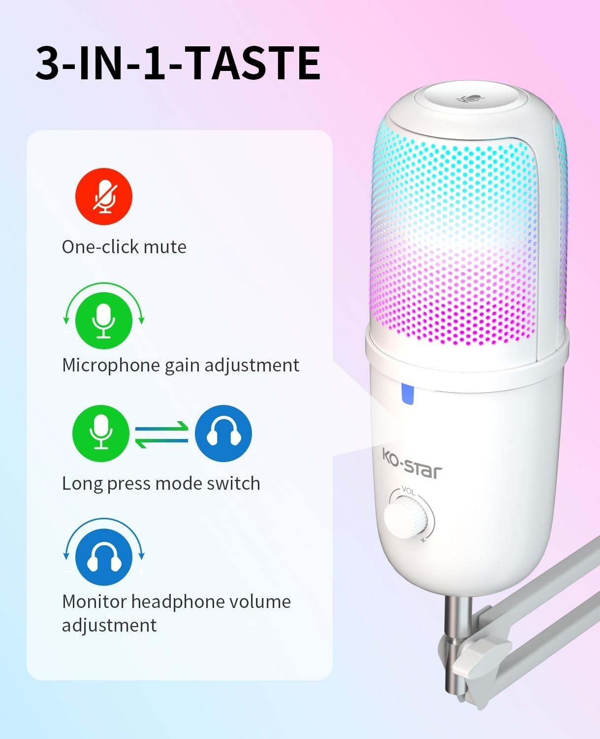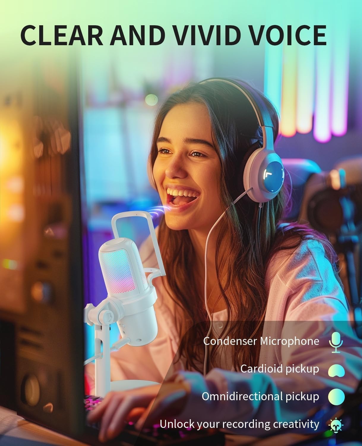 Omnidirectional USB Microphone for Gaming Streaming - Quick Mute RGB Glow