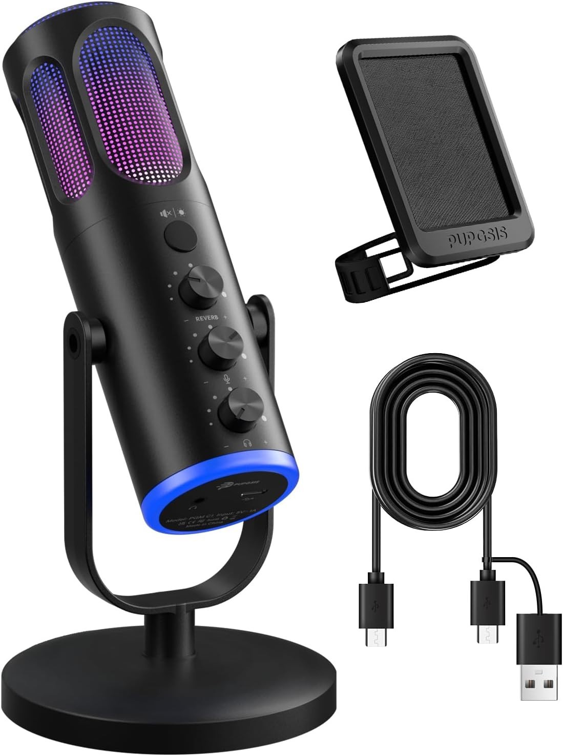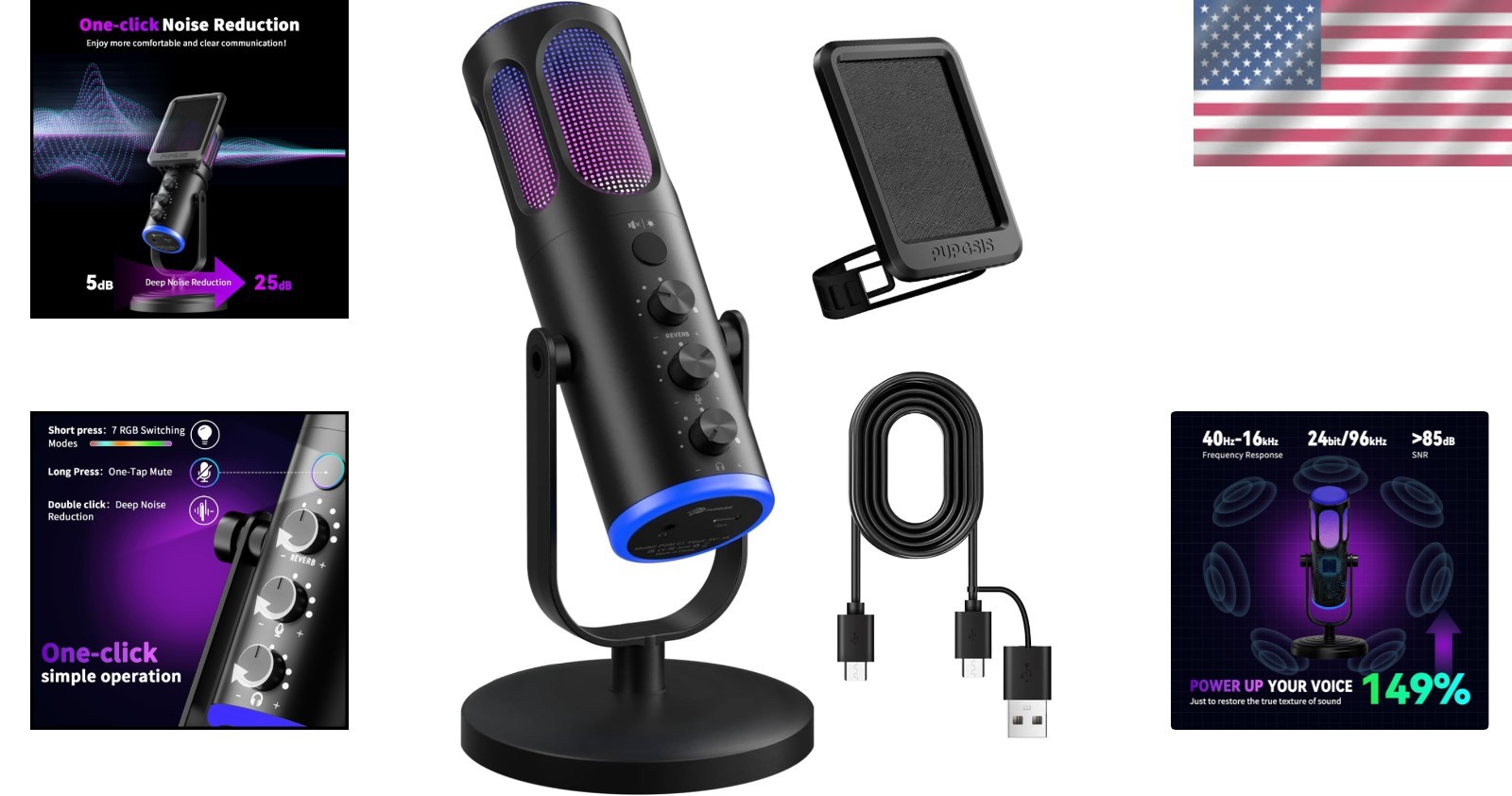 Professional USB Condenser Microphone for Streaming with RGB One-Touch Mute