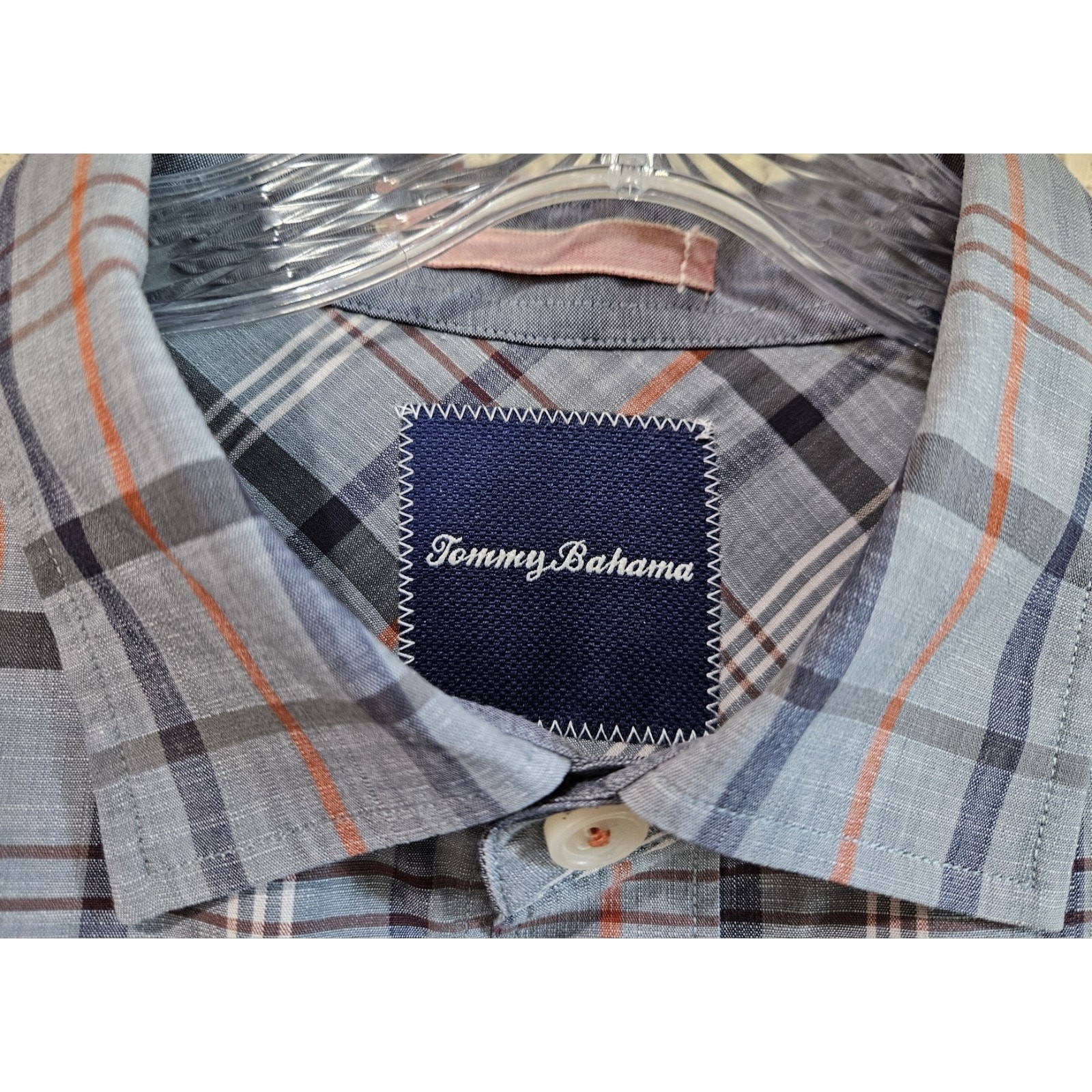 TOMMY BAHAMA Men's M Shirt Plaid Blue Orange Long Sleeve 100 Cotton Chest 46