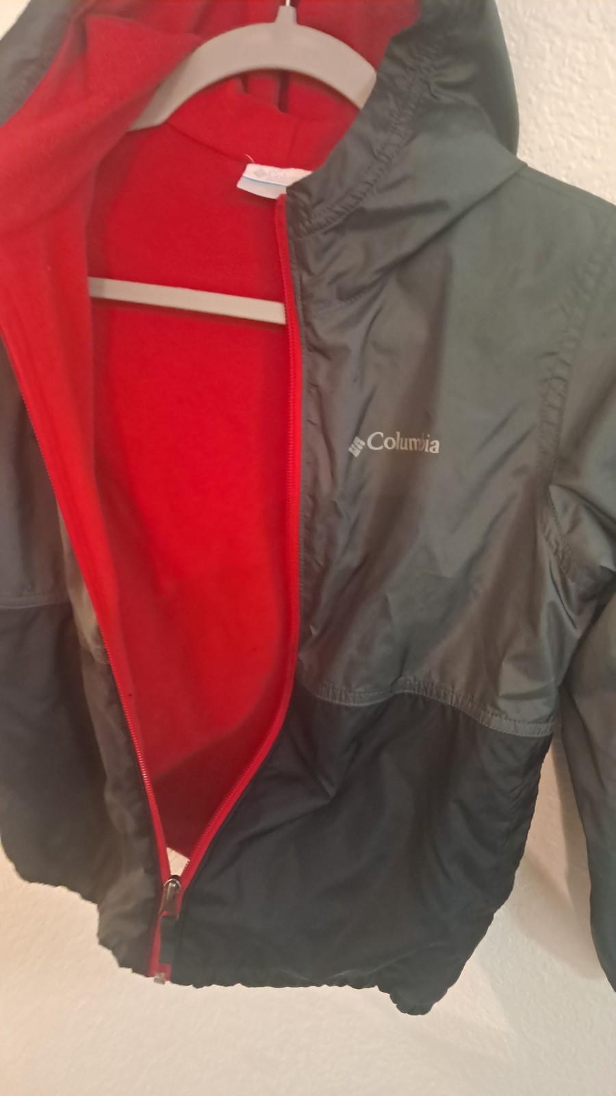 Columbia Youth Fleece Lined Hooded Windbreaker Rain Jacket Kids Size 8 black