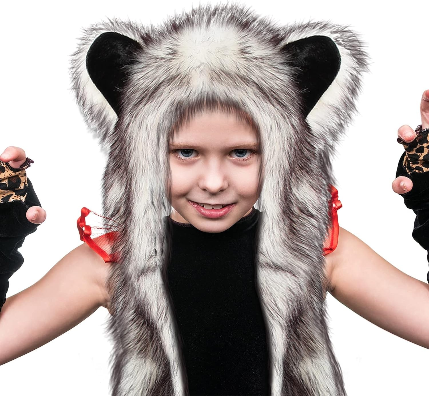 Delightful Faux Fur Wolf Accessories Set - Hood, Gloves Scarf for Winter