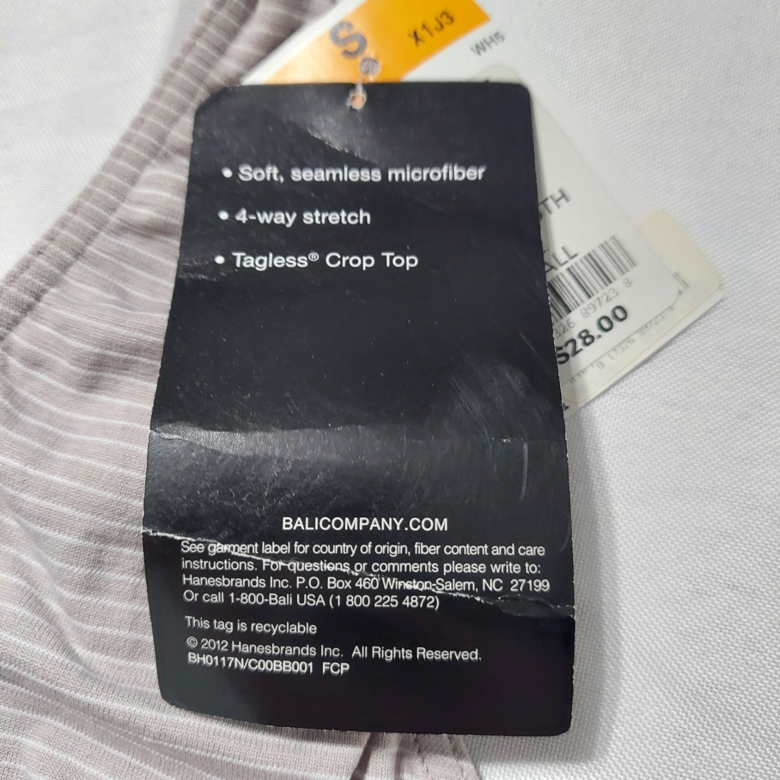 как выглядит Bali Comfort Revolution Seamless Crop Top Bra Taupe Striped Wireless Small NWT фото