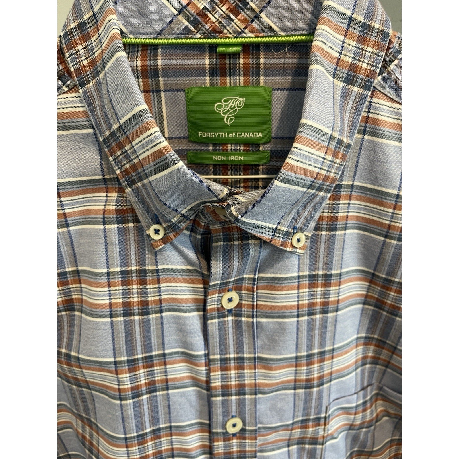 как выглядит Forsyth of Canada Mens Non Iron Plaid Button Down Shirt Blue Brown Large L/G фото