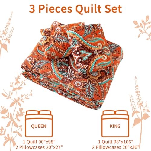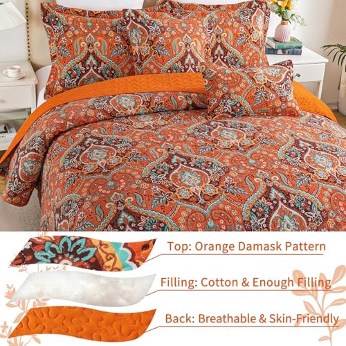 как выглядит Cotton Quilts Queen Size, Queen Quilt Bedding Queen 90" 98" Bright Orange фото