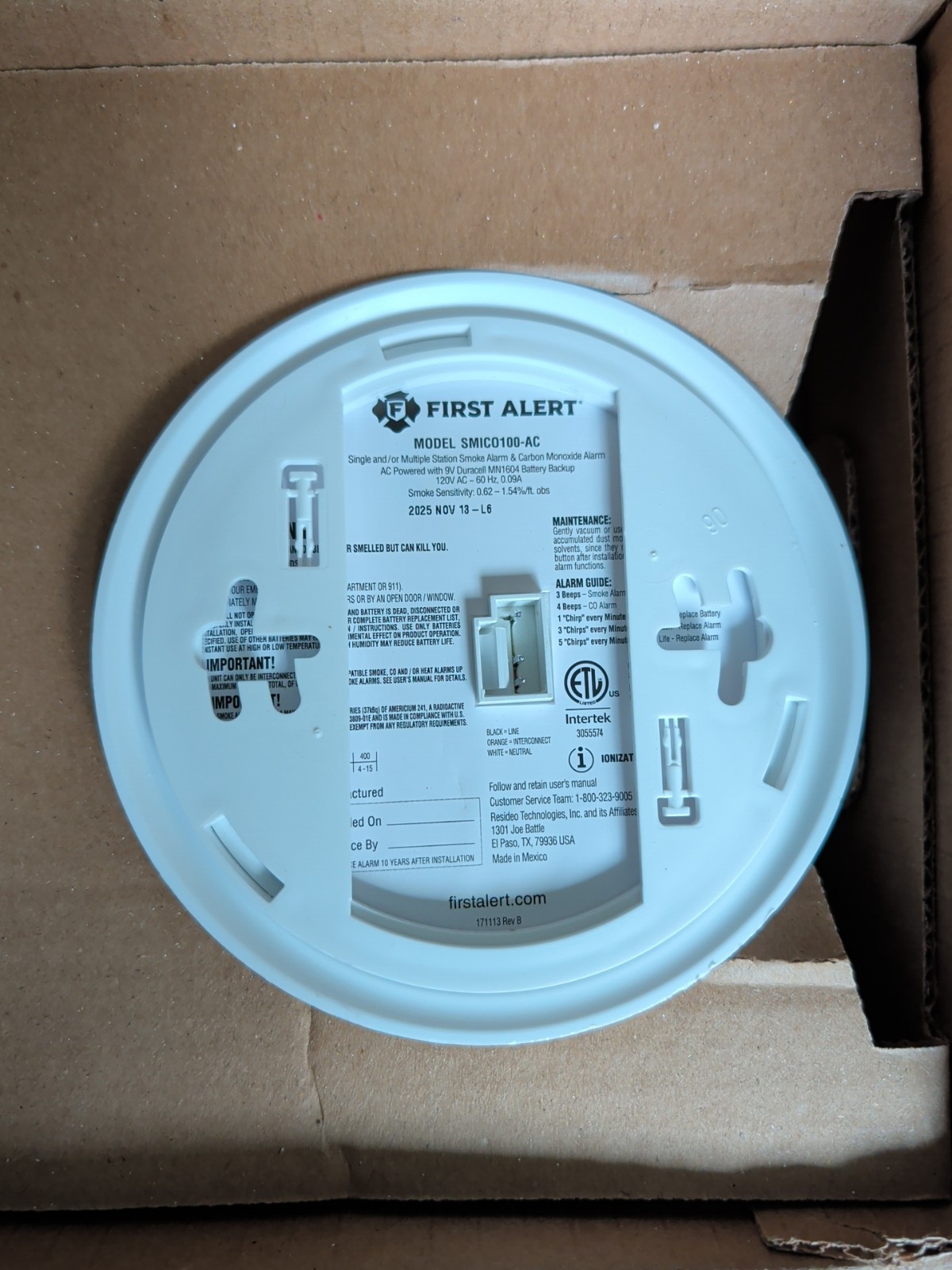 First Alert BRK SMICO100-AC Interconnect Hardwire Smoke Carbon Monoxide Alarm