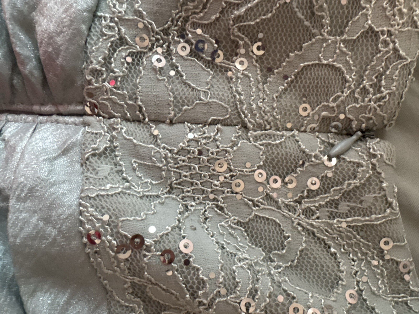 как выглядит R M Richards 14W Light Blue Lace Sequin Bow Knee Length Sweetheart A-Line Dress фото