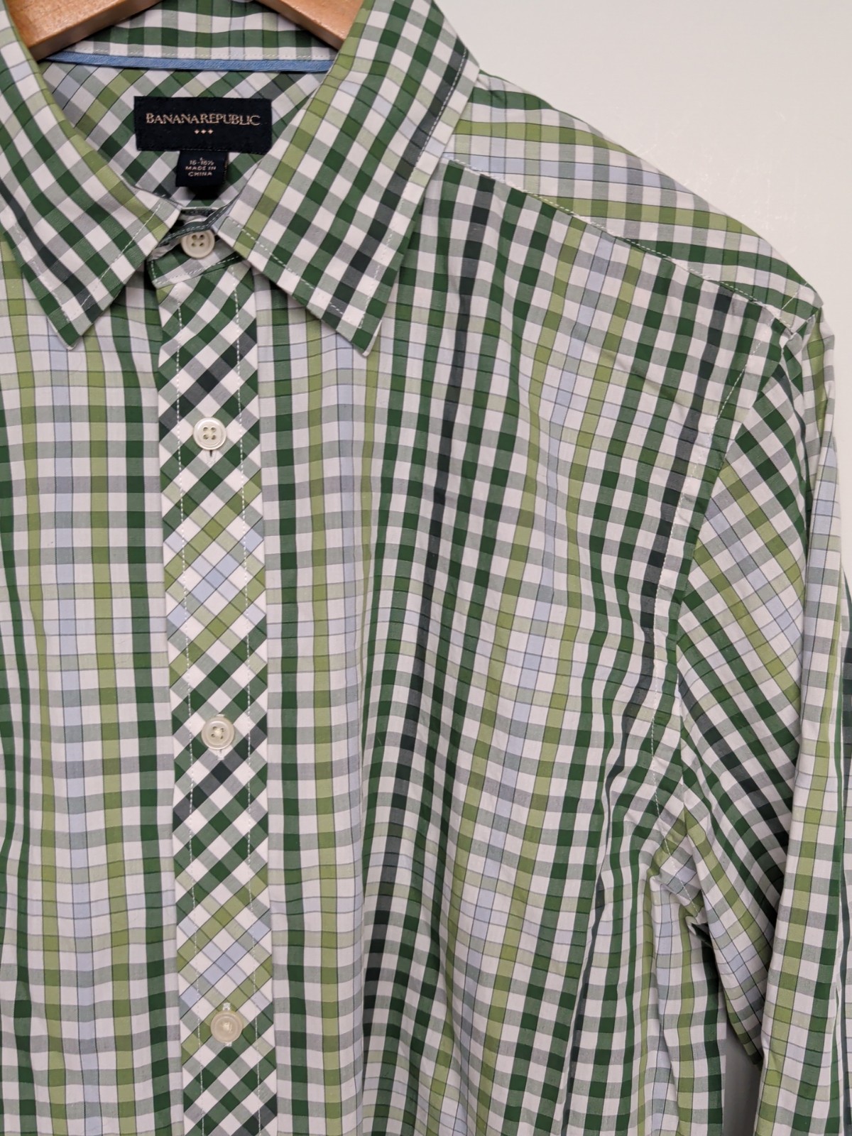Banana Republic Men's Green Plaid Long Sleeve Dress Shirt L 16-16.5 Lightweight