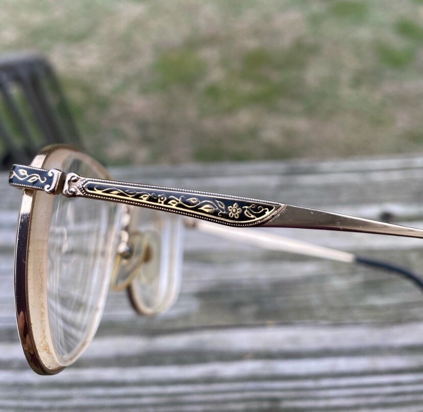 Laura Ashley Isabelle Black and Gold metal glasses frames 52 17 135 vintage