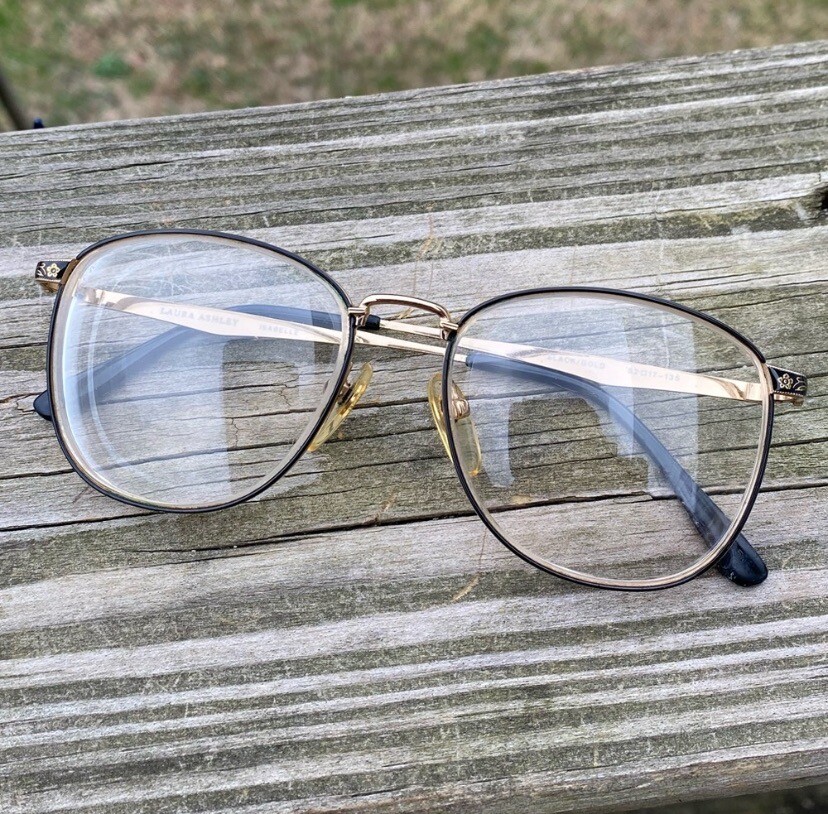 как выглядит Laura Ashley Isabelle Black and Gold metal glasses frames 52 17 135 vintage фото