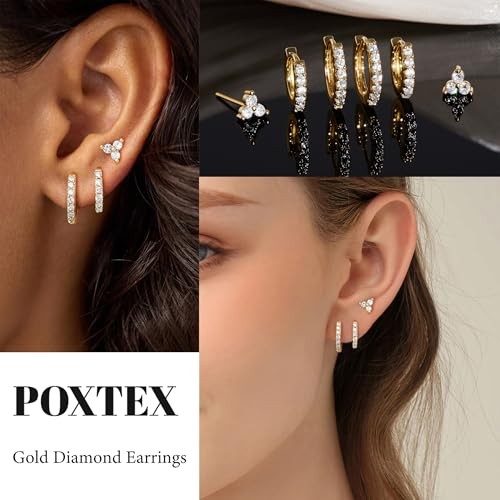как выглядит Christmas Small Hoop Earrings for Women, Diamond Stud Huggie Gold-White Diamond фото
