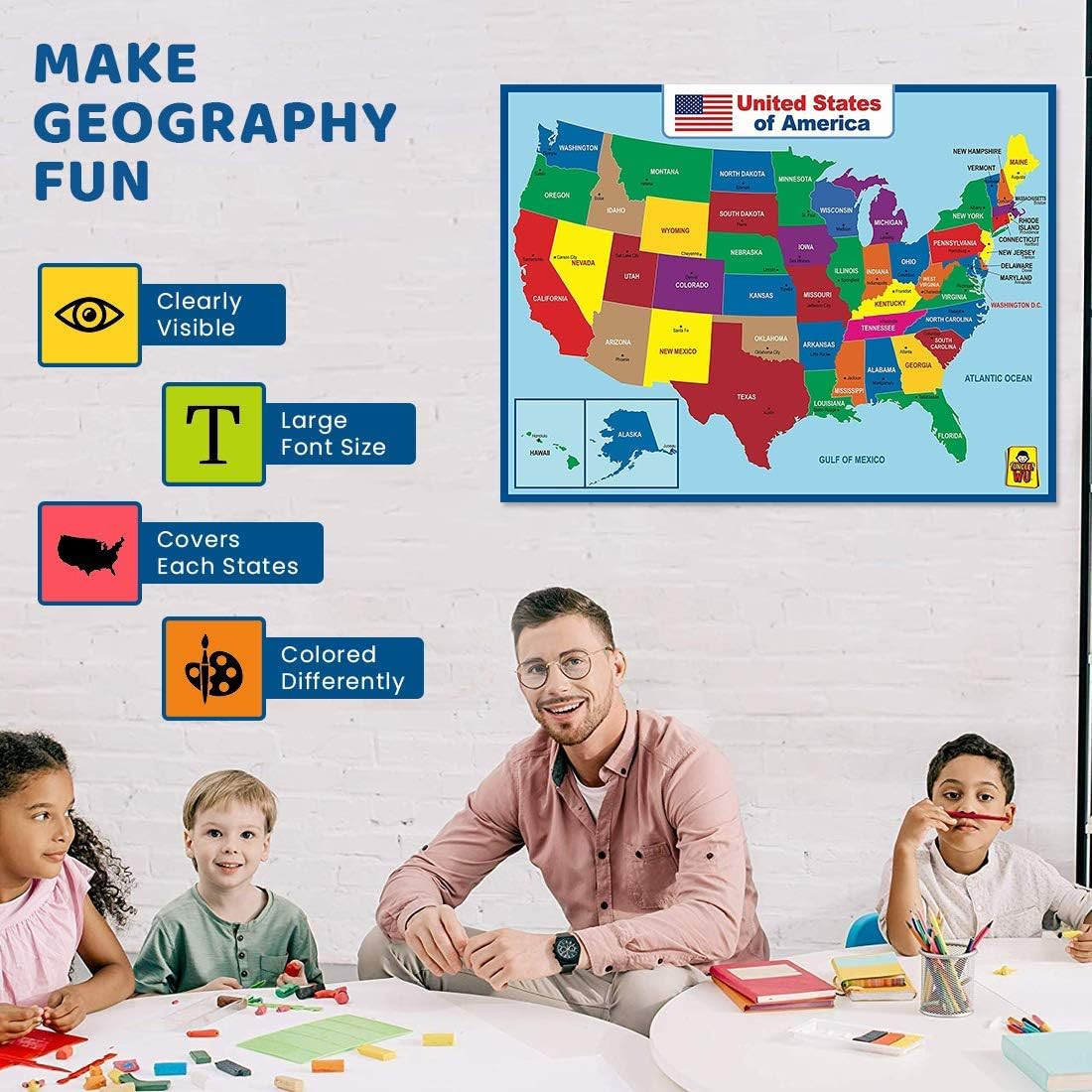 United States Map Laminated Poster - Dry Erase Double Side Educational Poster fo