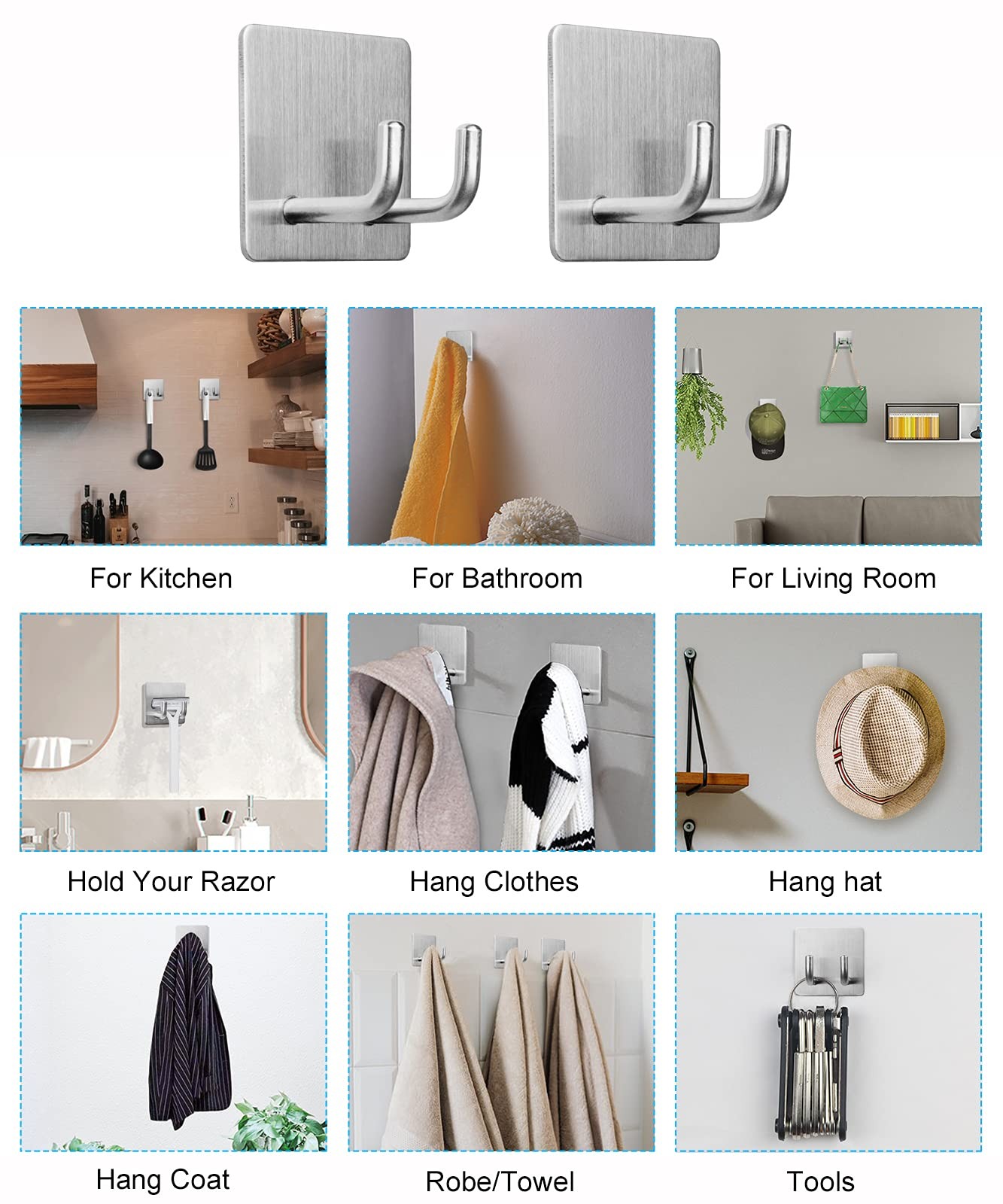 Razor Holder Shaver Hook Hanger Stand Heavy Duty Self Adhesive Stainless Steel