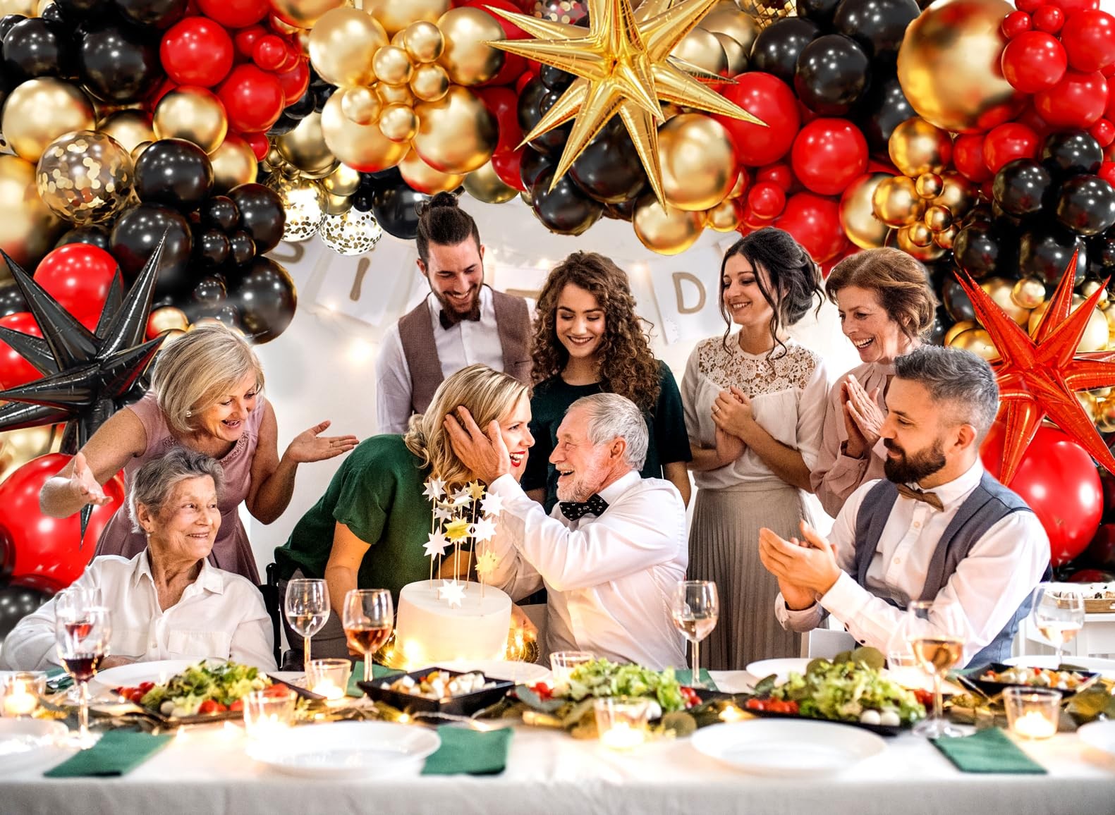 Red Black Gold Balloon Arch Kit with 3 Star Balloons Garland for Party Decora...