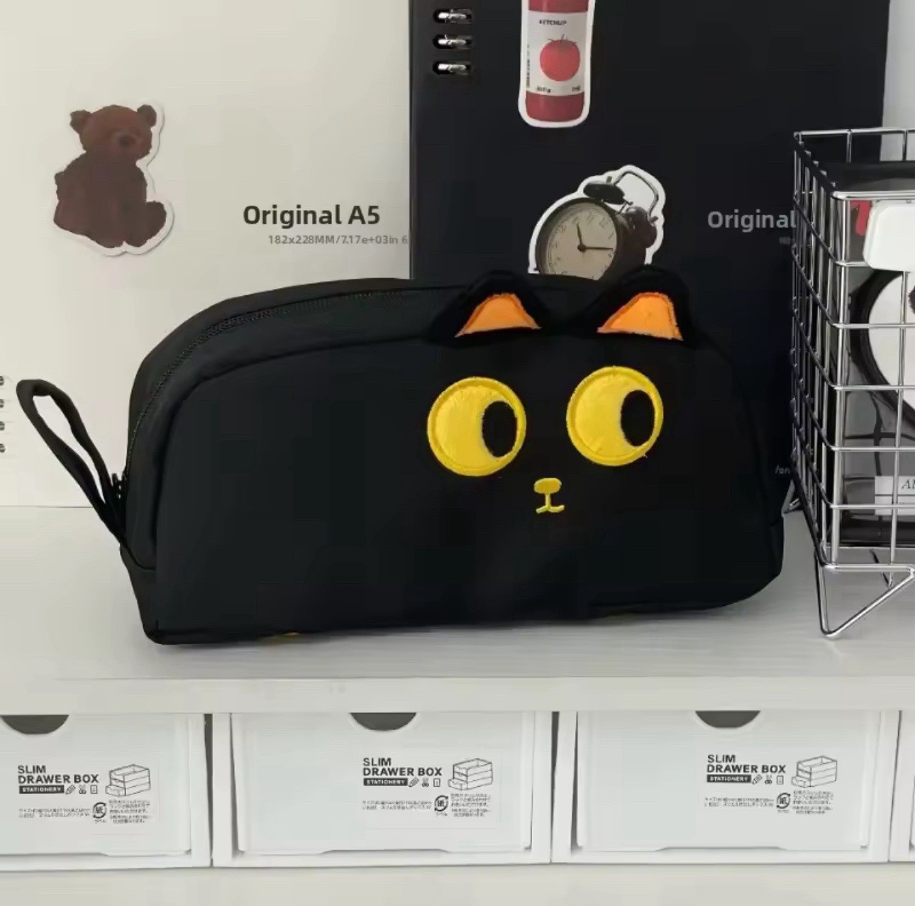 Cute Black Cat Pencil Case Kawaii Cartoon Zipper Pouch Makeup Bag School