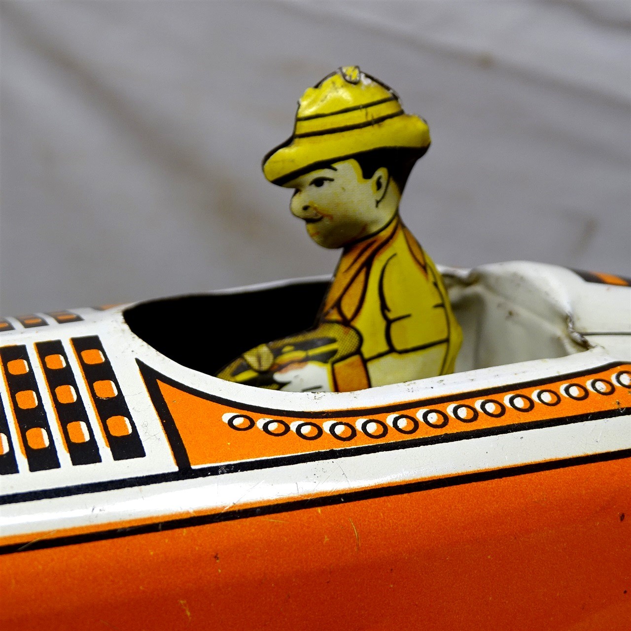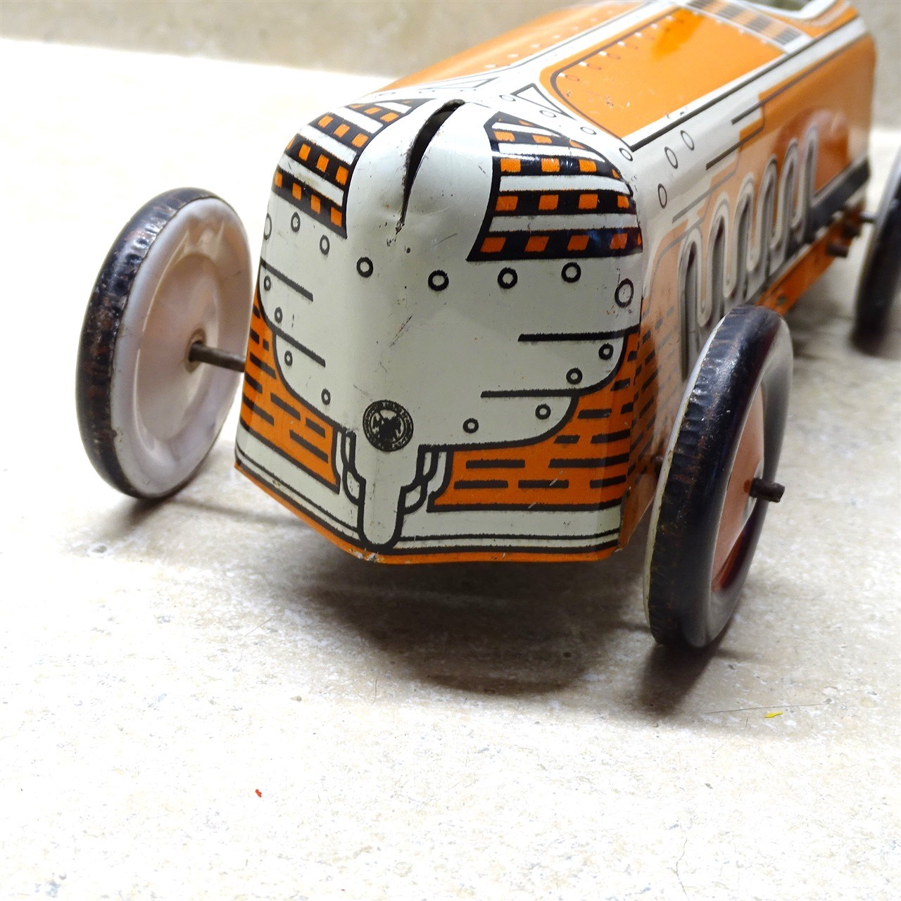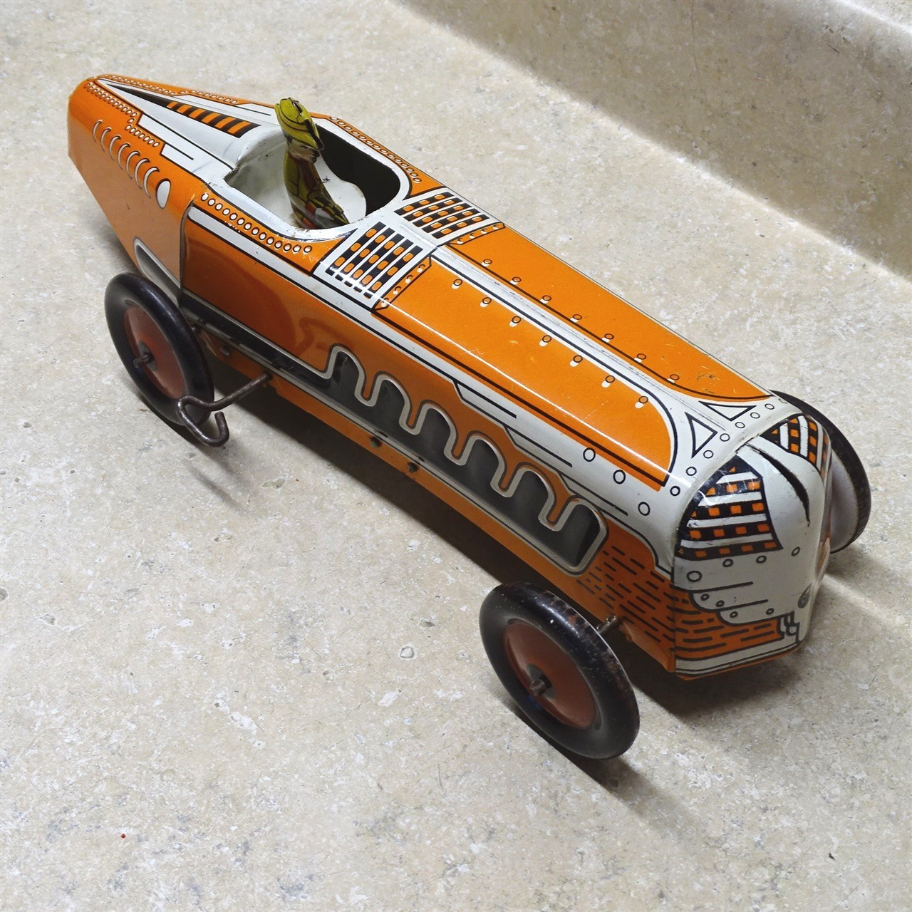 как выглядит Vintage Marx Toys Tin Wind-Up Car, Open Wheel With Driver, 13" фото