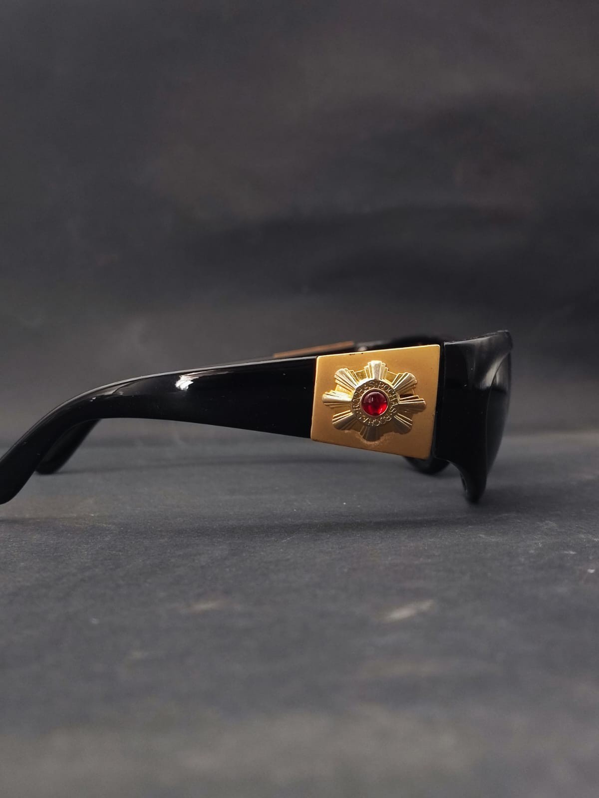 как выглядит Vintage Rochas Paris 9031 Sunglasses Black Gold Red Stone France фото