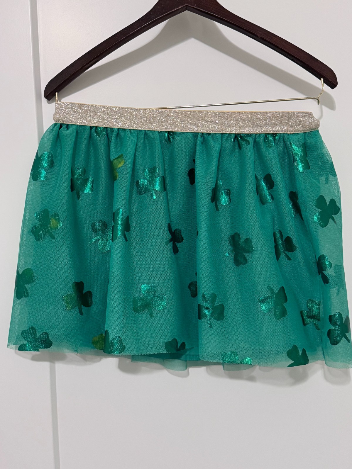 St. Patrick's Day Cat Jack pull on Tutu, Girls Size 8 Medium, Shamrocks,green