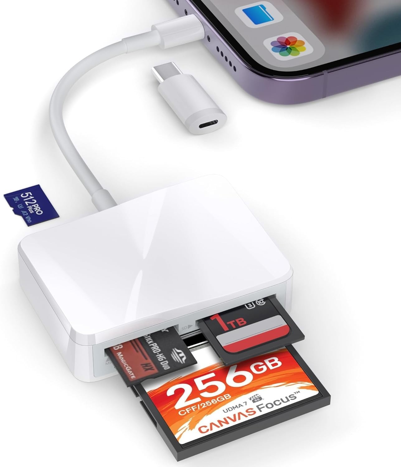 SD Card Reader for iPhone, 4 in 1 USB C and Lightning to CF/SD/MS/TF Card Ada...