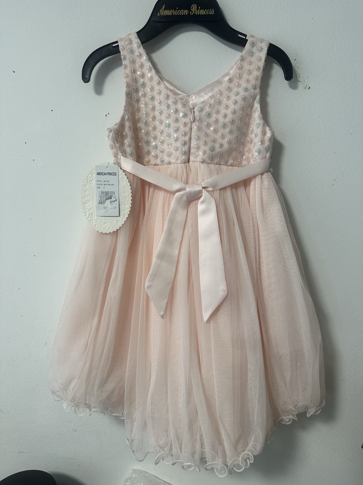 American Princess Light Pink A-Line Sleeveless Dress Size 4 Pearls Sequins Bow