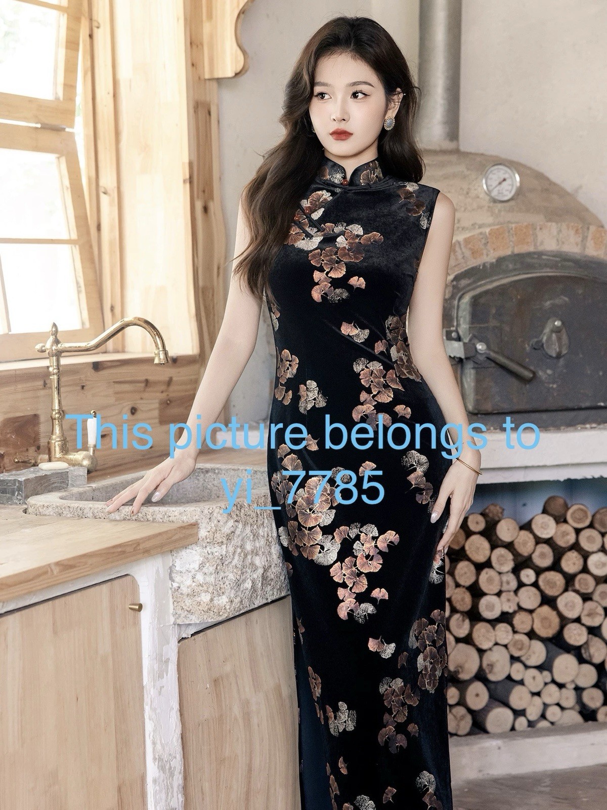 A22 Women s Chinese Qipao Cheongsam Velvet Floral Bodycon Maxi Dress Elegant