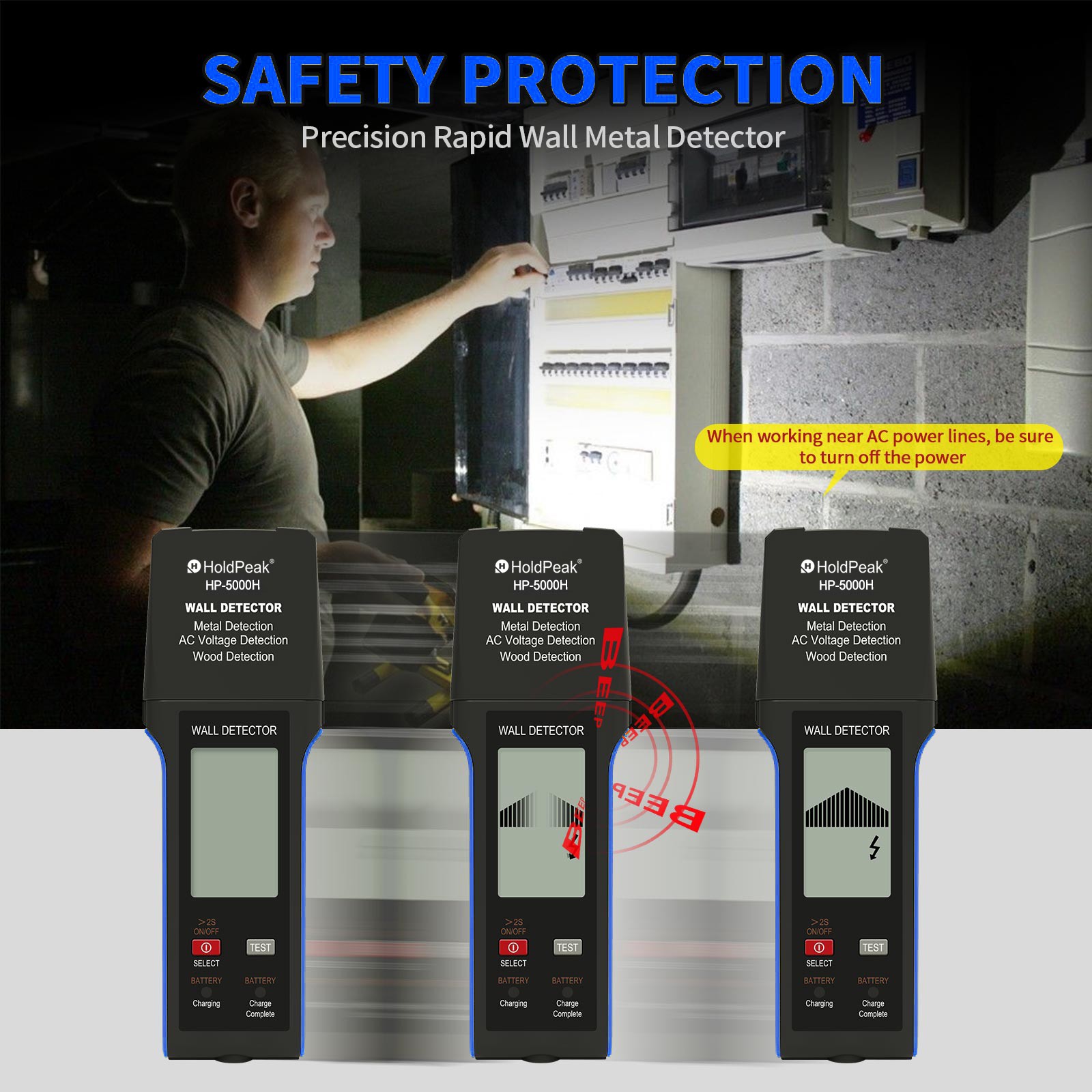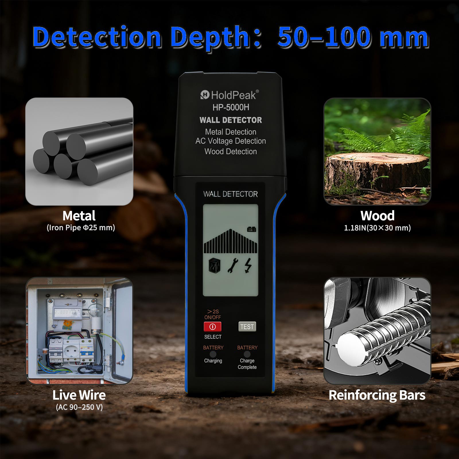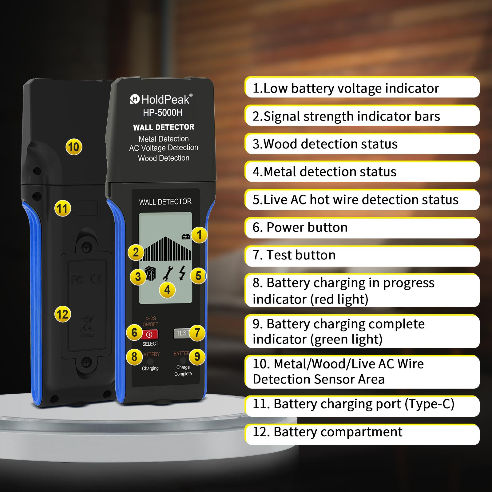 Wall Scanner 5-in-1 Stud Finder Metal Live AC Wire Detector Type-C Rechargeable