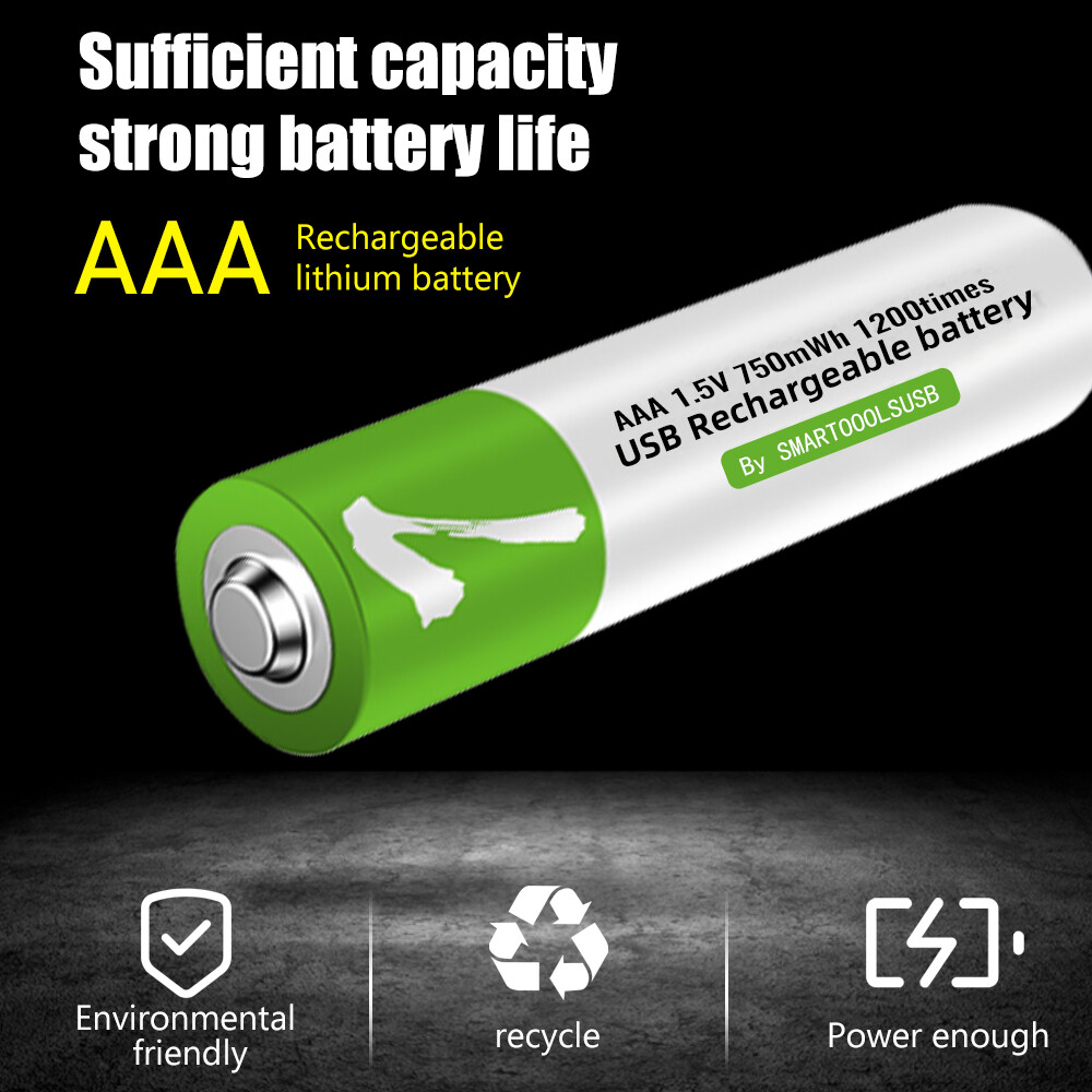 4Pcs 1.5 Volt 750mWh AAA Type C USB Rechargeable Lithium Li-ion Batteries 1.5V
