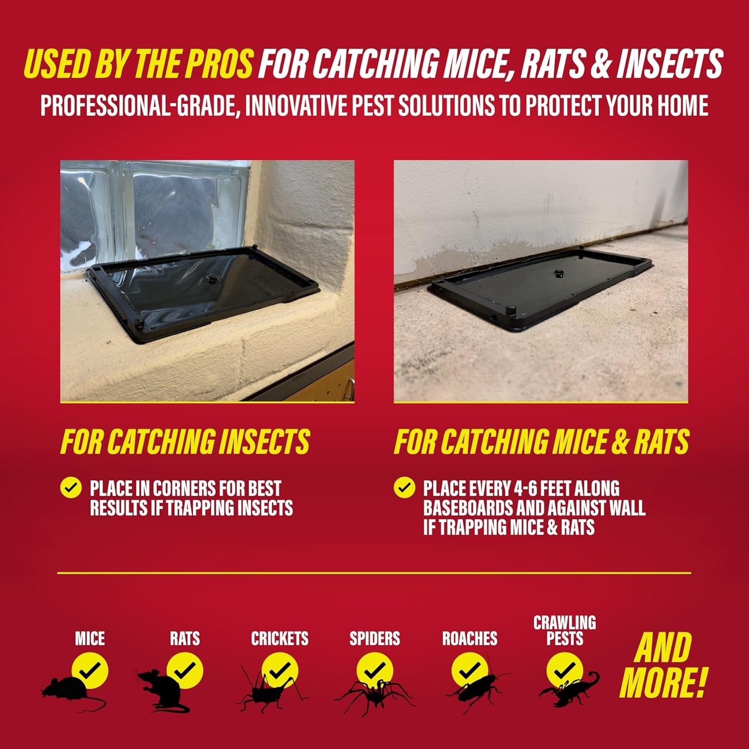 Rat, Snake and Mouse Traps 12Pk, Large Bulk Glue Rat Traps for Home, Adhesive...