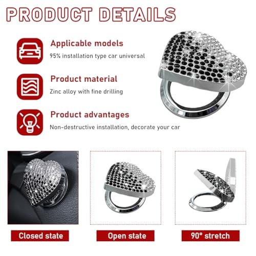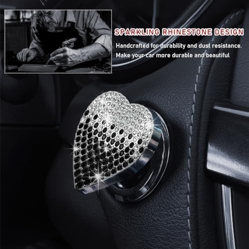 Bling Car Engine Start Button Cover, Heart Shape Rhinestone Push Gradient Black