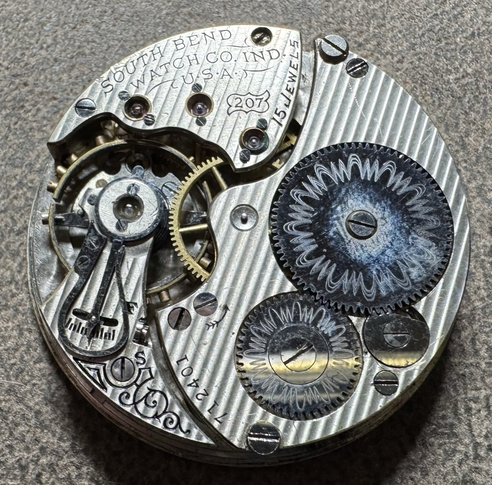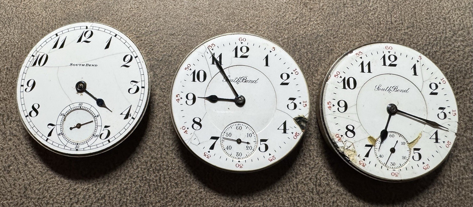 3 SOUTH BEND 16S 15J GRADE 207 PW PS POCKET WATCH MOVEMENT FANCY DIAL LOT