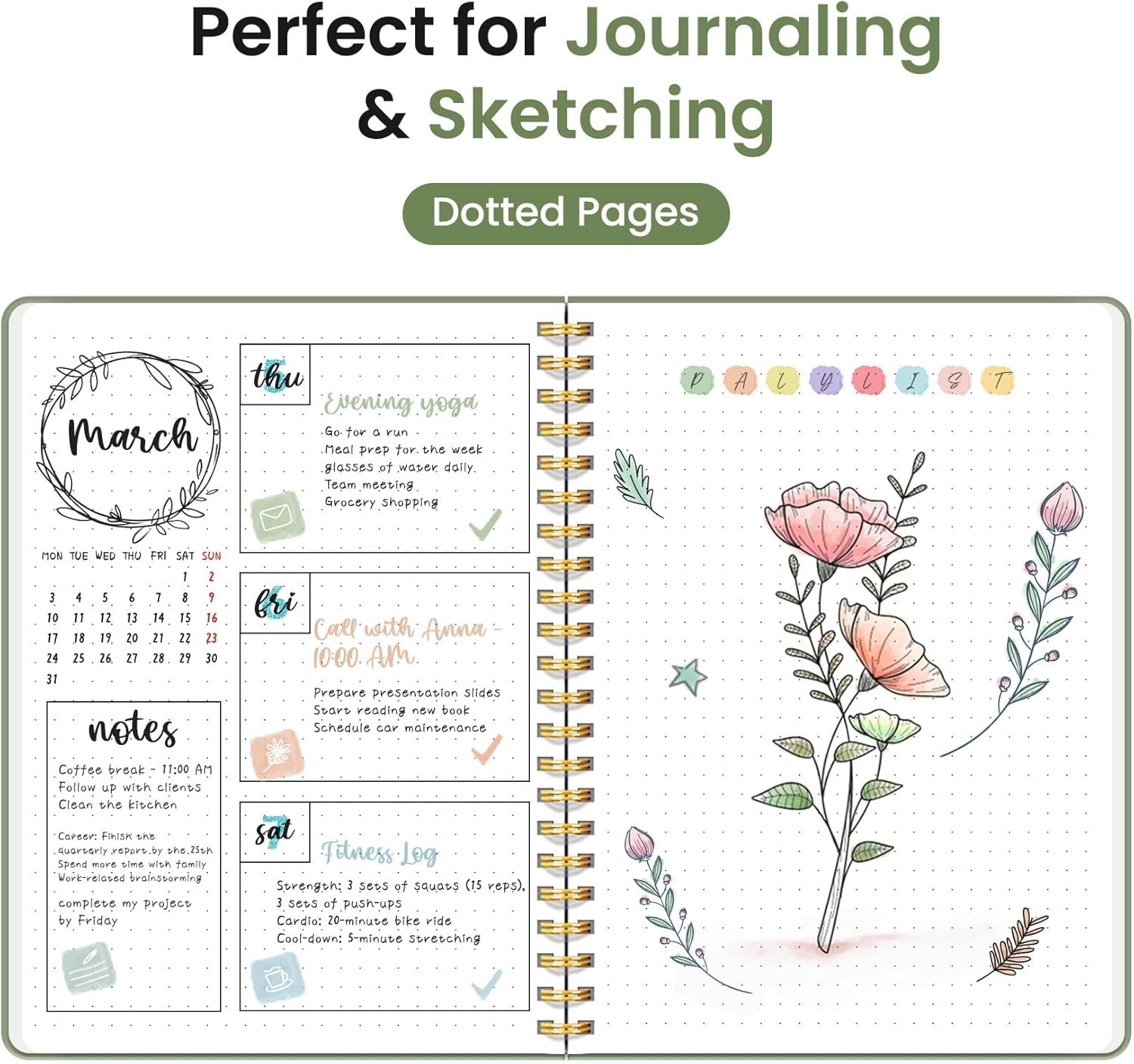 140-Page Dotted Notebook - Travel-Friendly, Water-Resistant, Green Cover