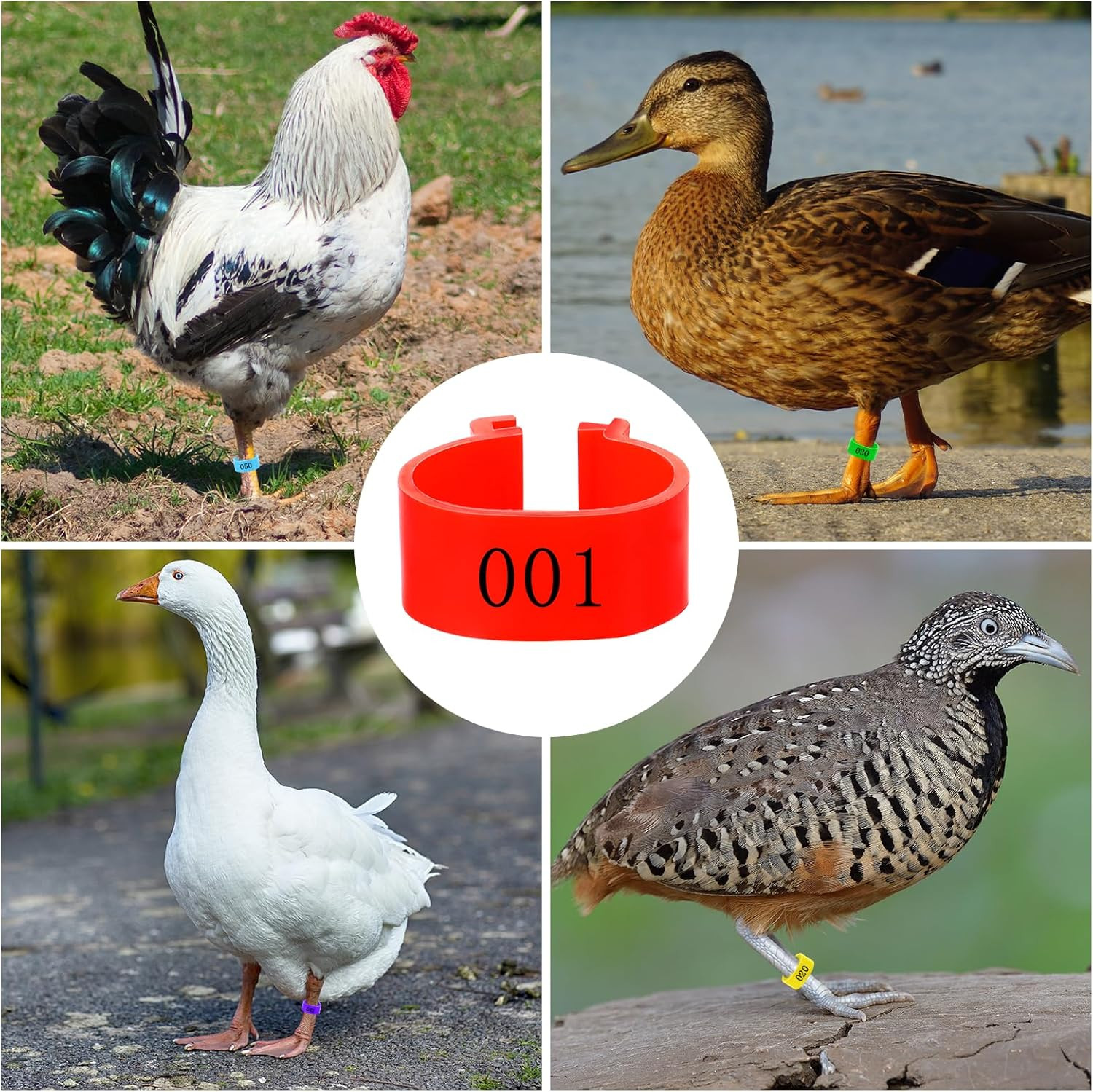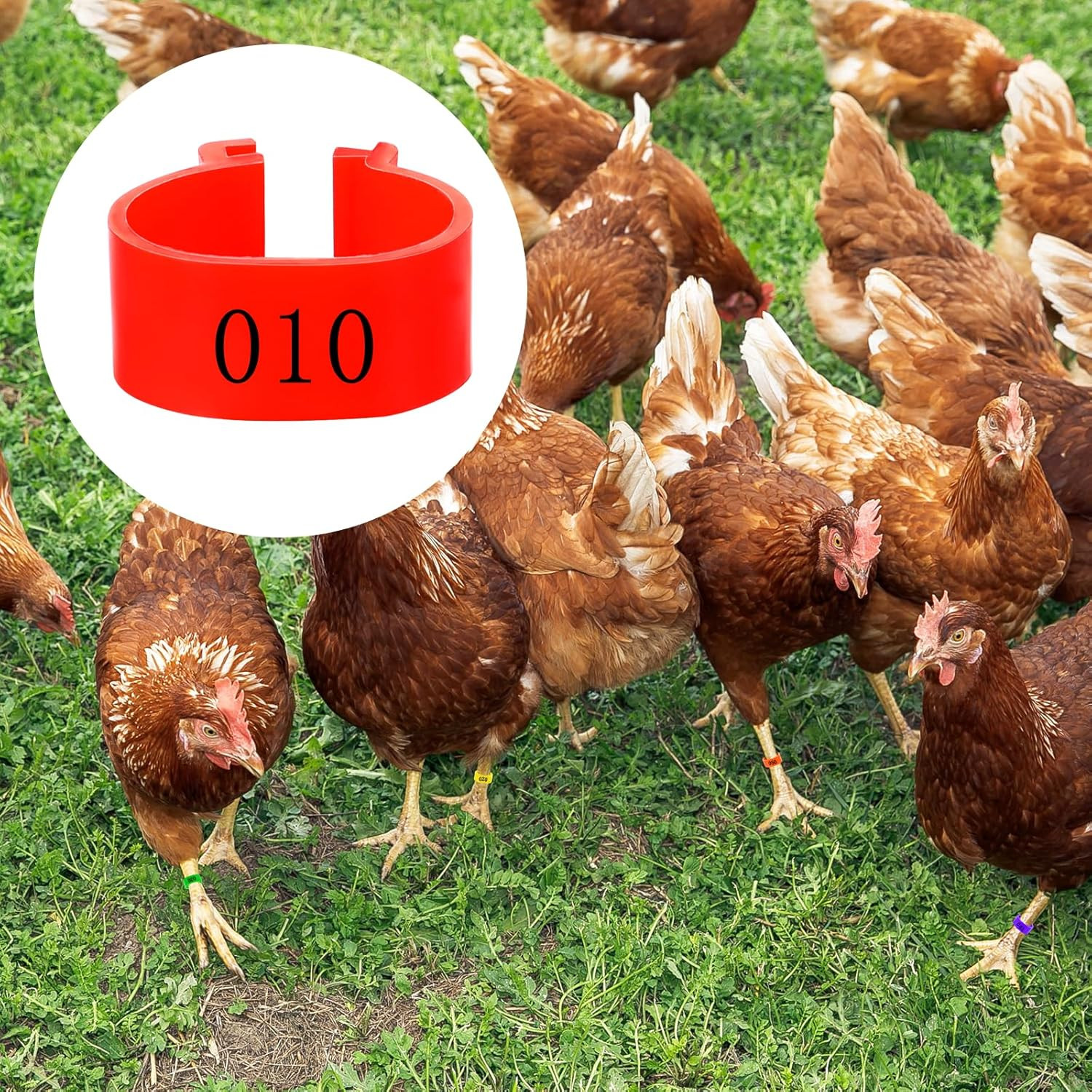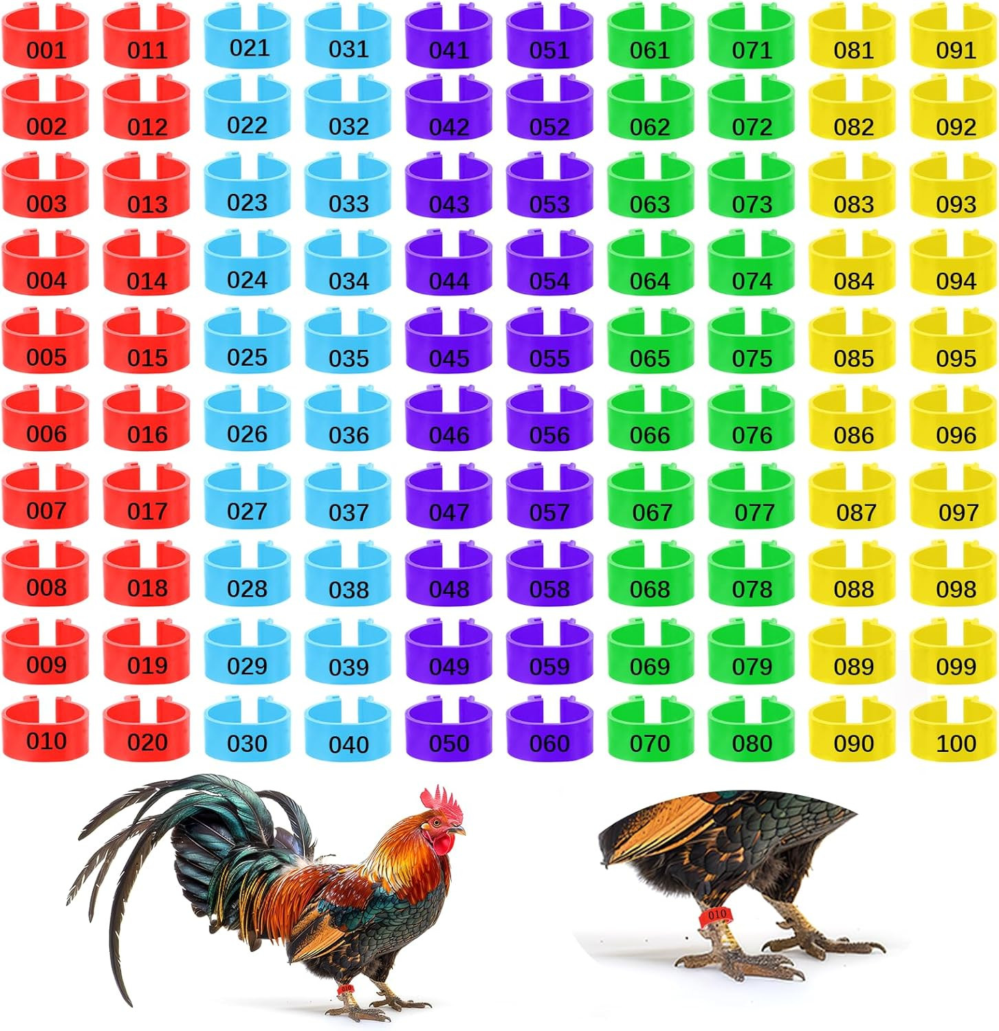 как выглядит 100 Pcs Chicken Leg Bands 5 Color Numbered Chicken Leg Rings Identification B... фото