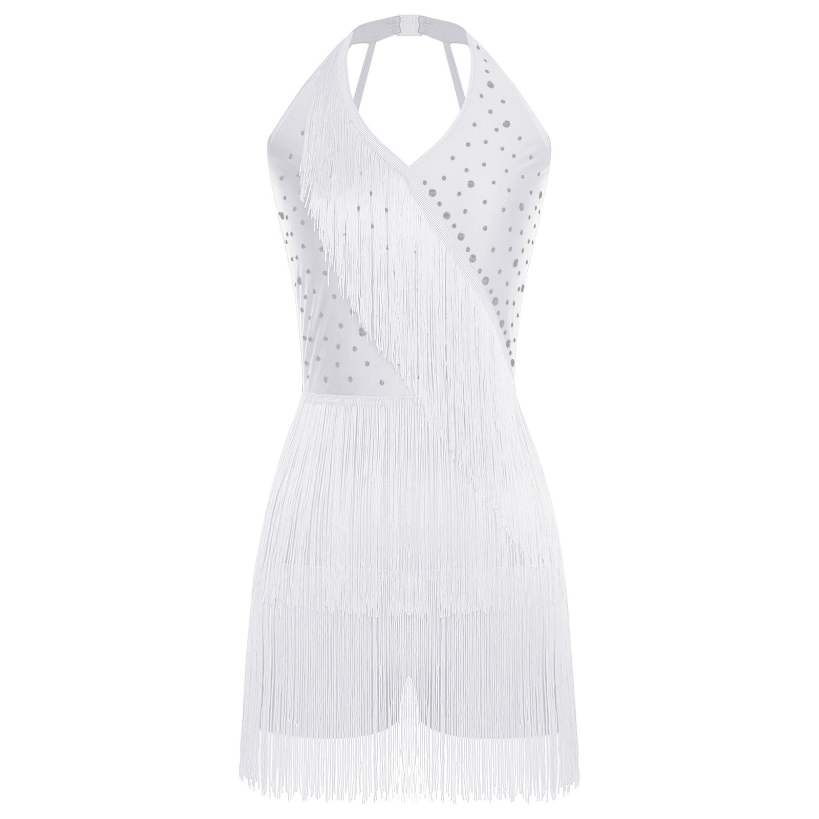 Women Latin Dance Dress Sleeveless Fringe Rumba Samba Tango Competition Costume