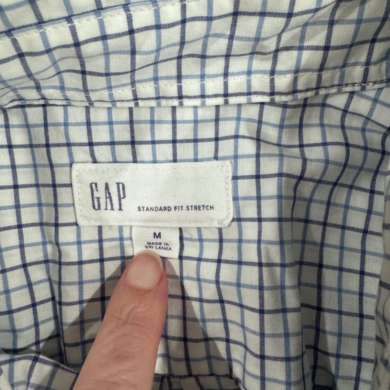 как выглядит GAP Mens Standard Fit Stretch Checked Button Down Shirt Size Medium Blue White фото