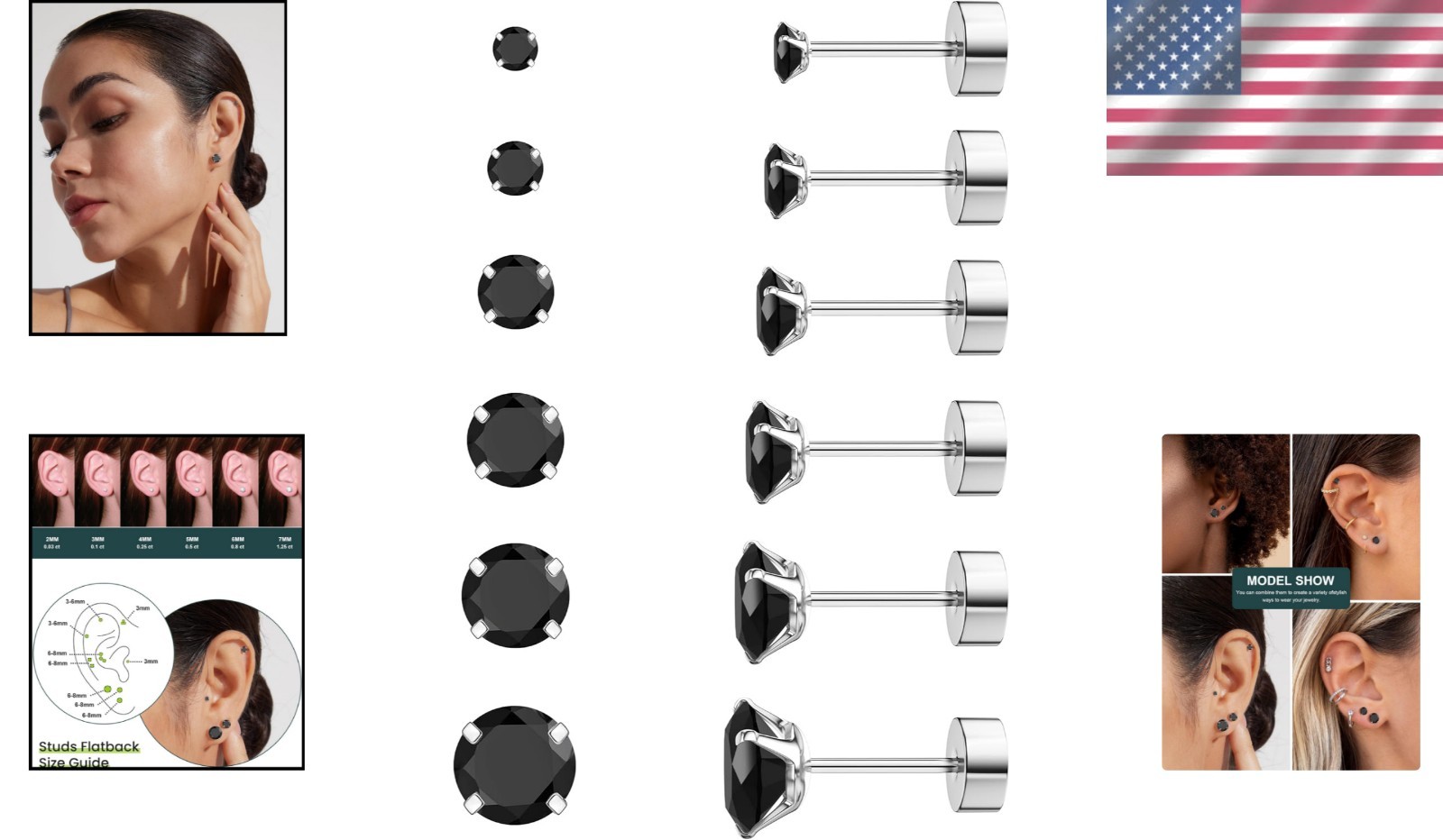 как выглядит Cubic Zirconia Surgical Steel Earrings - 6 Pairs for Sensitive Ears, Gift Ready фото